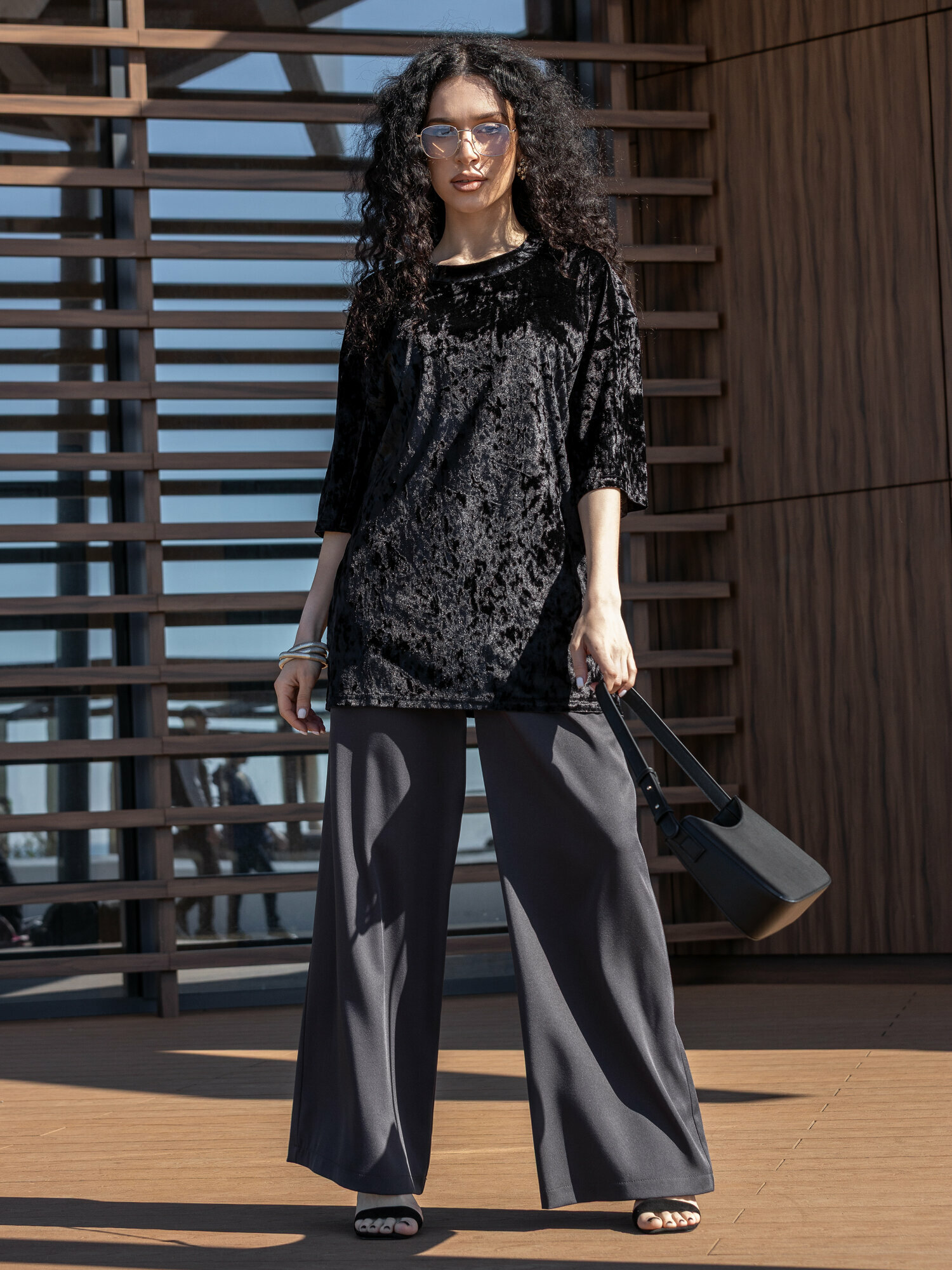 Футболка BUY-TEX.RU женская, велюровая, оверсайз, размер 46, черный
