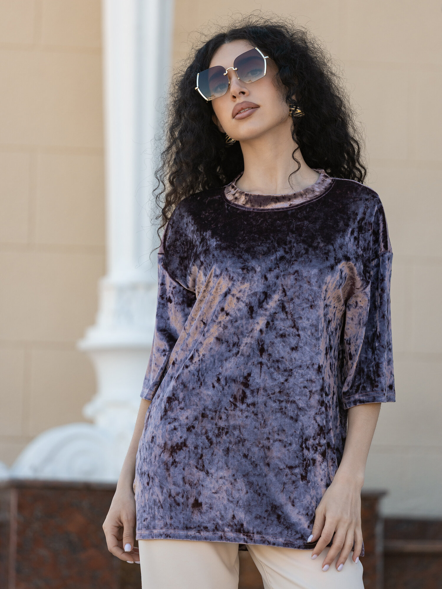 Футболка BUY-TEX.RU женская, велюровая, оверсайз, размер 44, фиолетовый