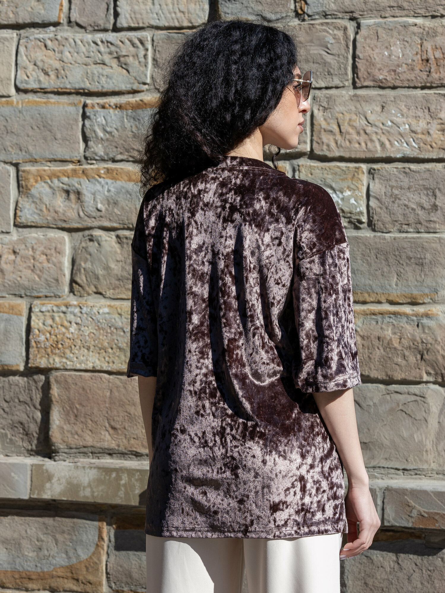 Футболка BUY-TEX.RU женская, велюровая, оверсайз, размер 44, кофе