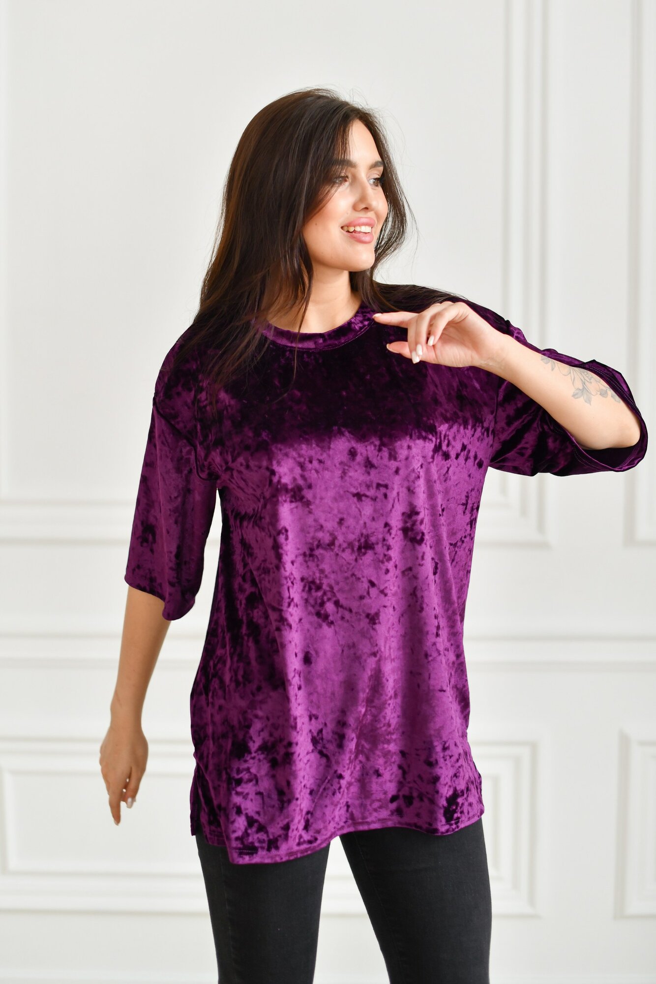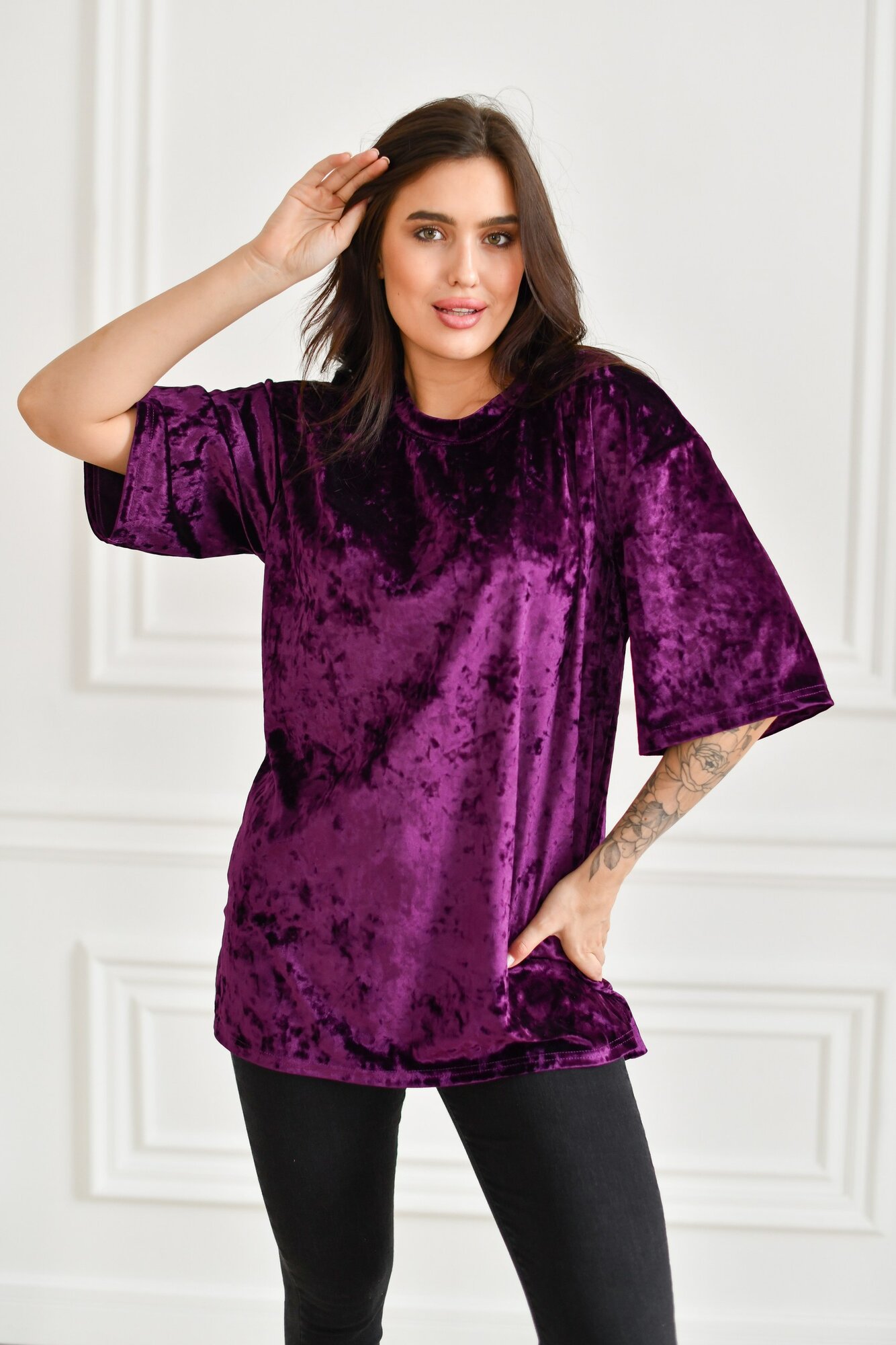 Футболка BUY-TEX.RU женская, велюровая, оверсайз, размер 46, фиолетовый