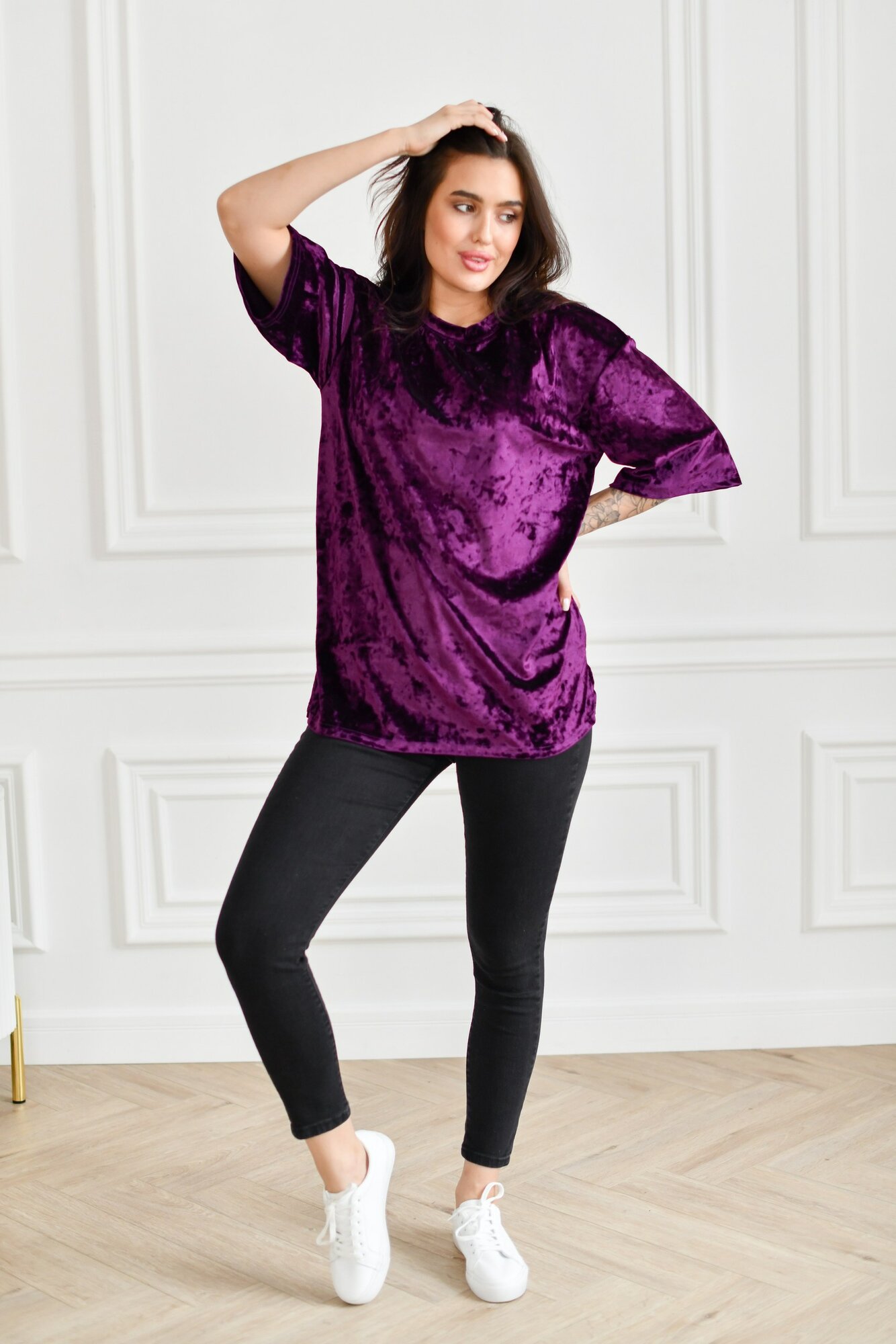 Футболка BUY-TEX.RU женская, велюровая, оверсайз, размер 48, фиолетовый
