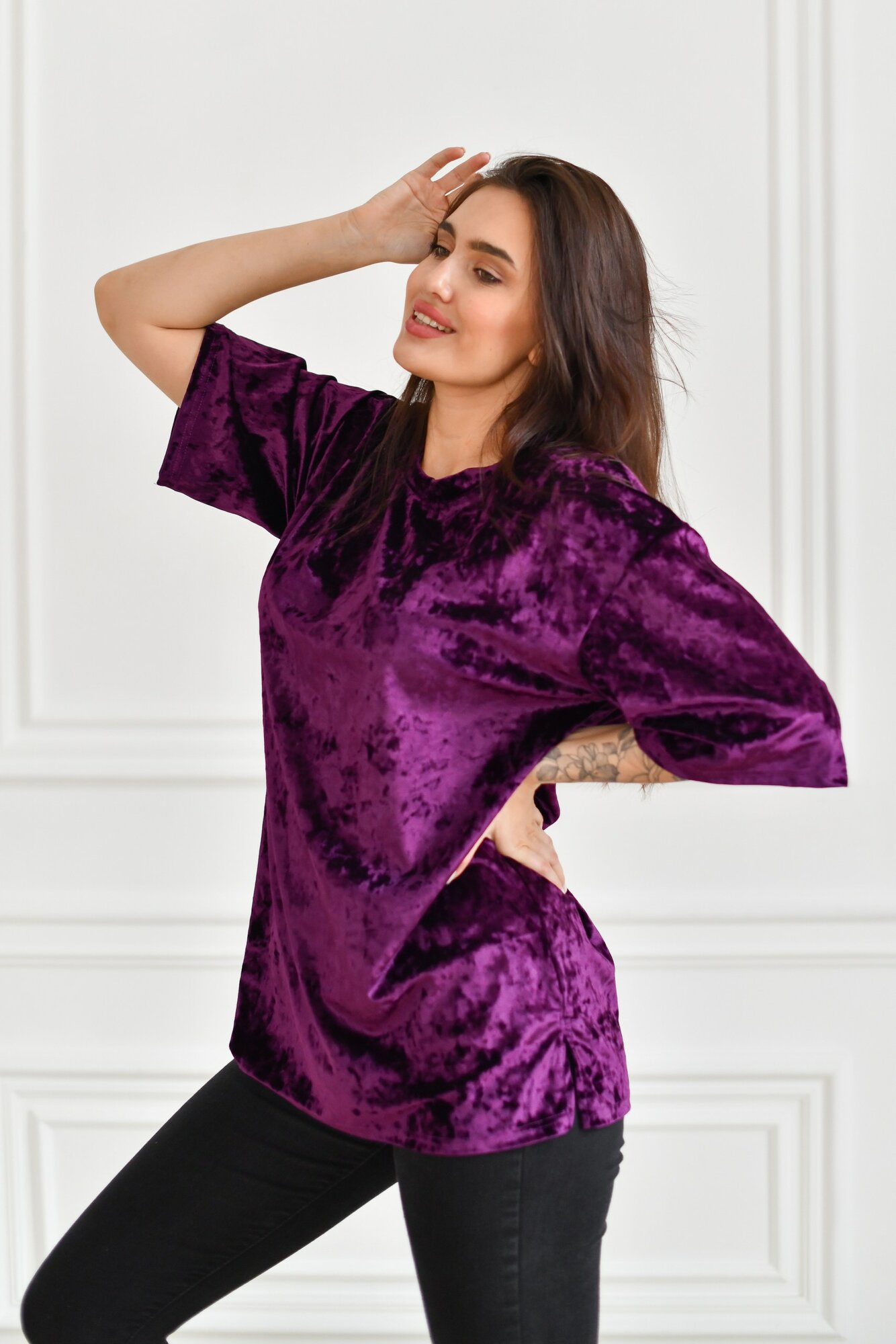 Футболка BUY-TEX.RU женская, велюровая, оверсайз, размер 50, фиолетовый