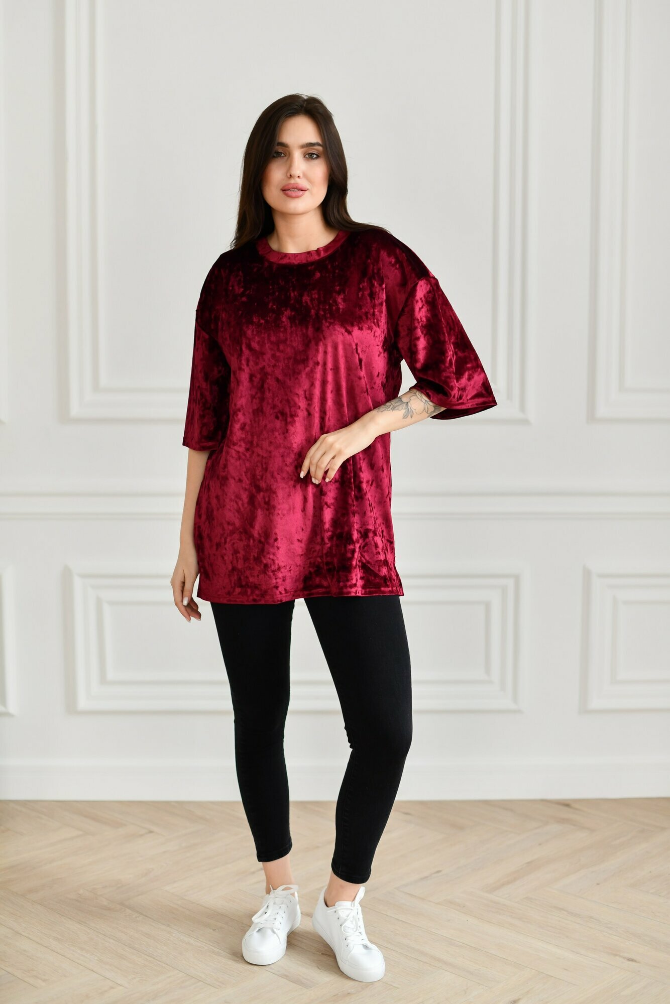 Футболка BUY-TEX.RU женская, велюровая, оверсайз, размер 50, бордо