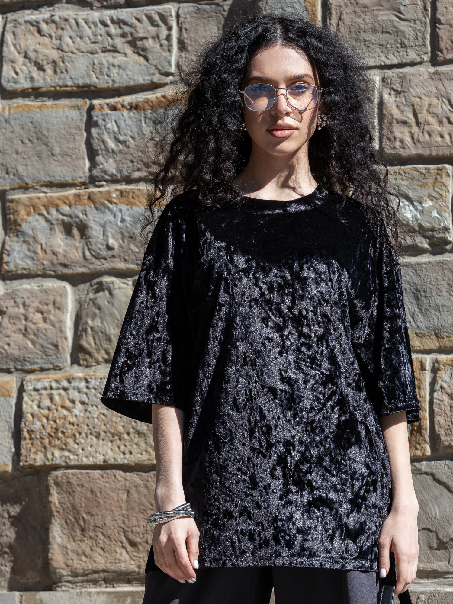Футболка BUY-TEX.RU женская, велюровая, оверсайз, размер 48, черный