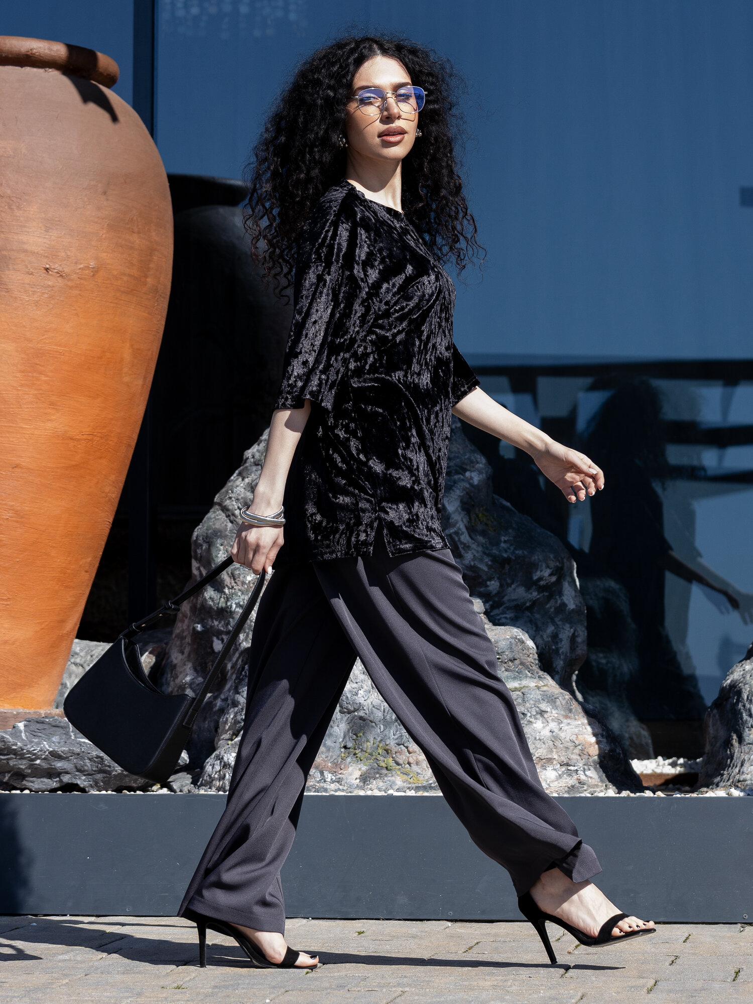 Футболка BUY-TEX.RU женская, велюровая, оверсайз, размер 46, черный