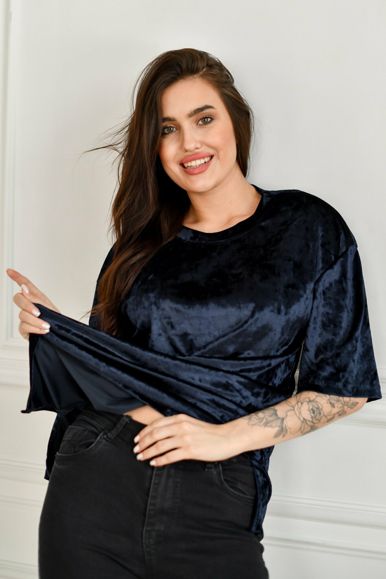 Футболка BUY-TEX.RU женская, велюровая, оверсайз, размер 44, черный