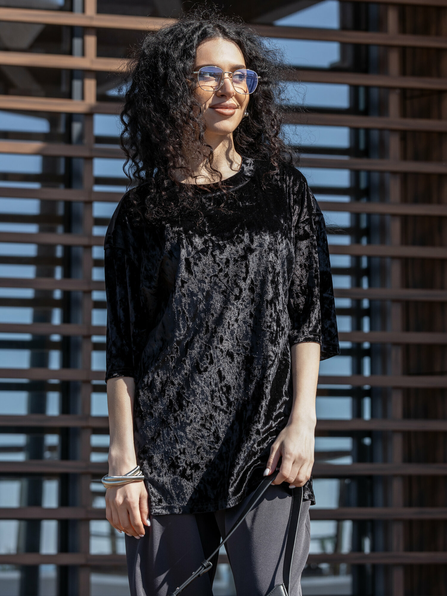 Футболка BUY-TEX.RU женская, велюровая, оверсайз, размер 44, черный