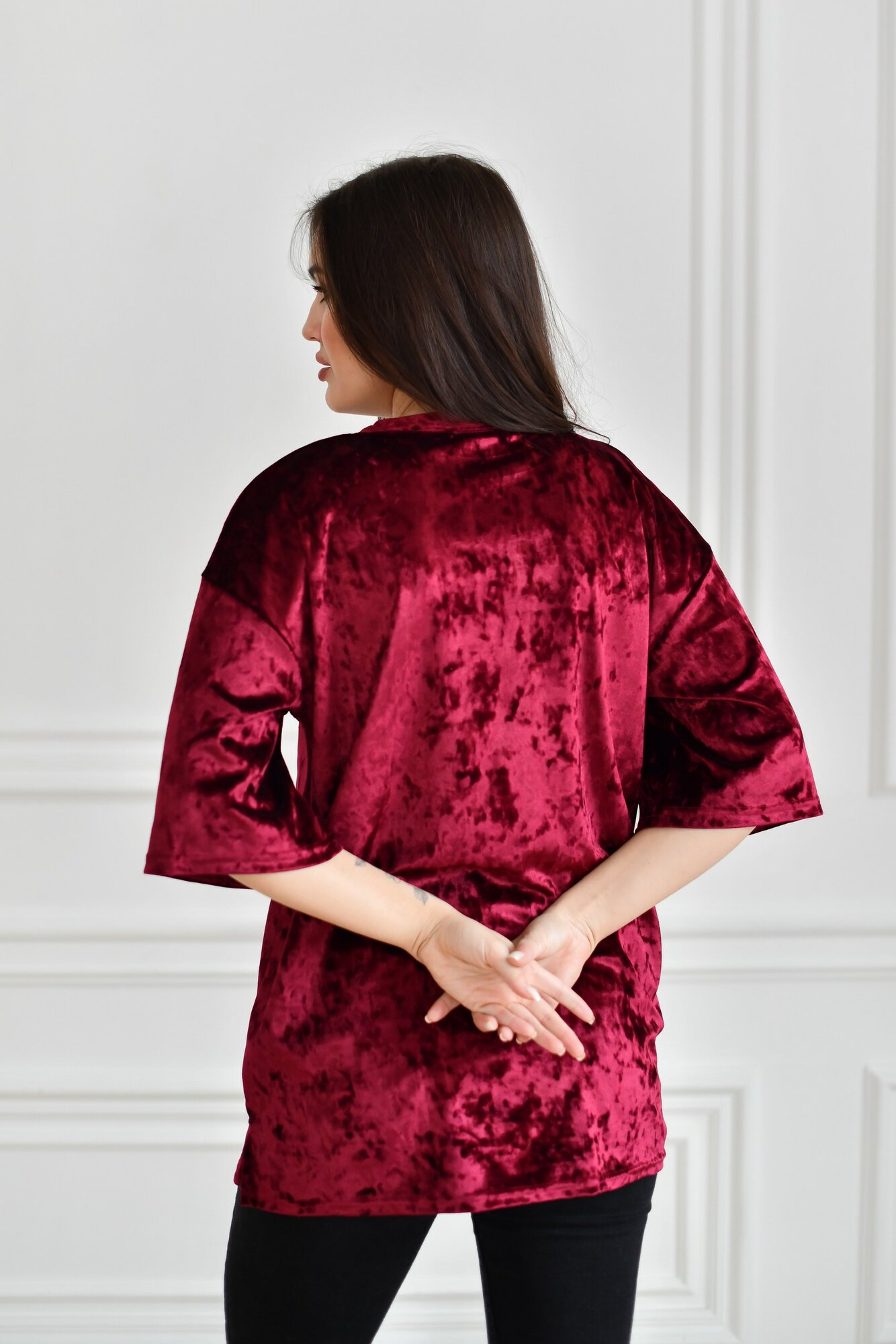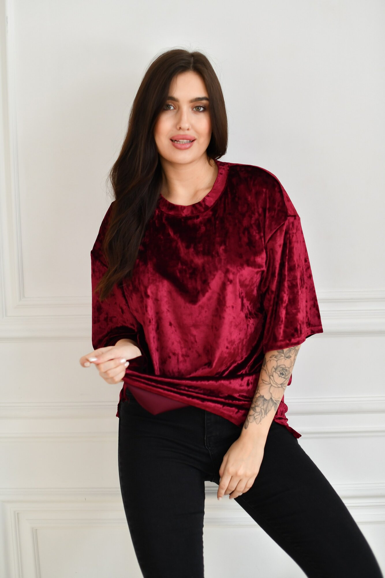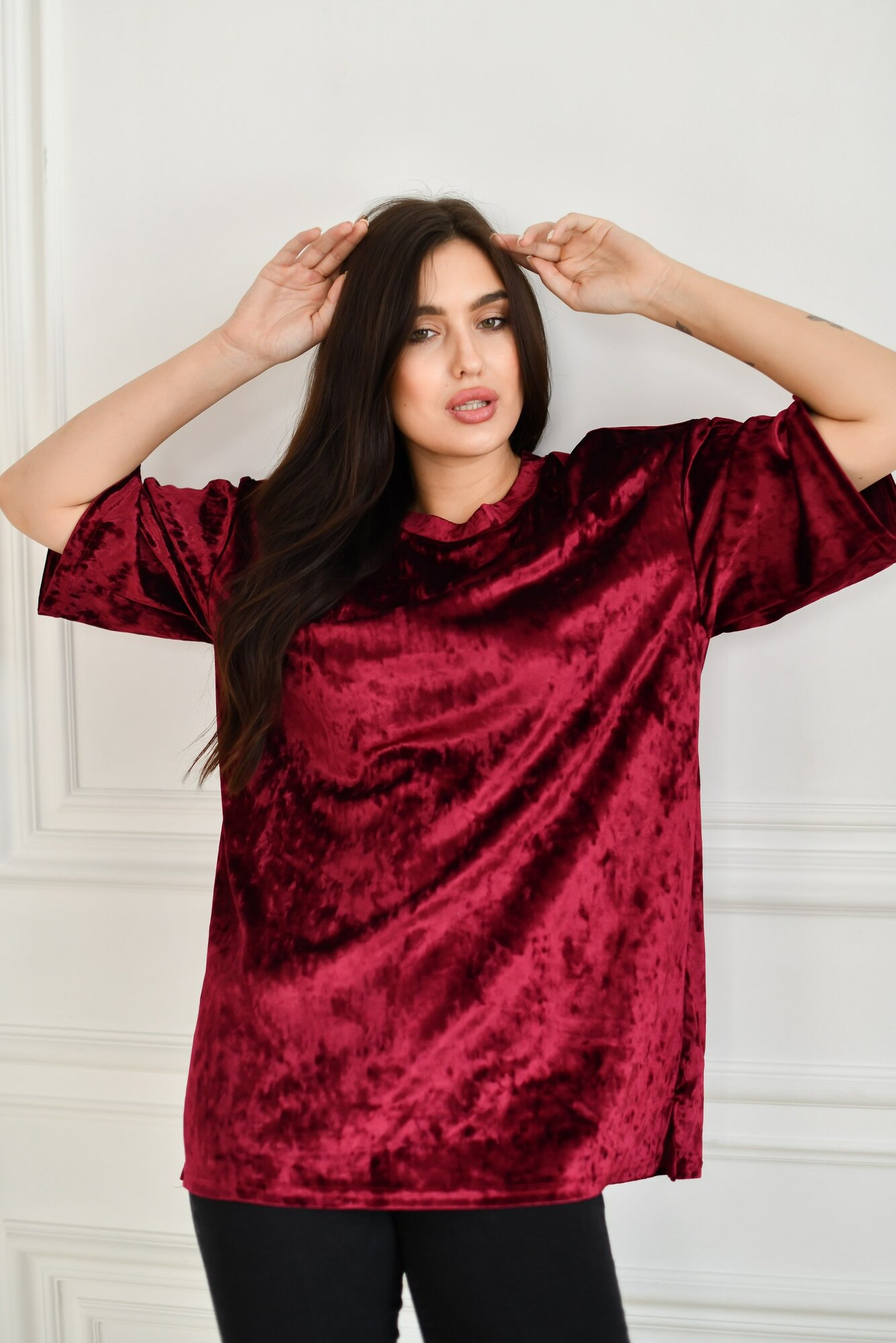 Футболка BUY-TEX.RU женская, велюровая, оверсайз, размер 46, бордо