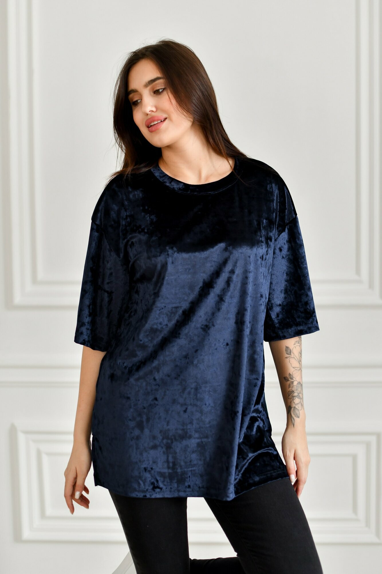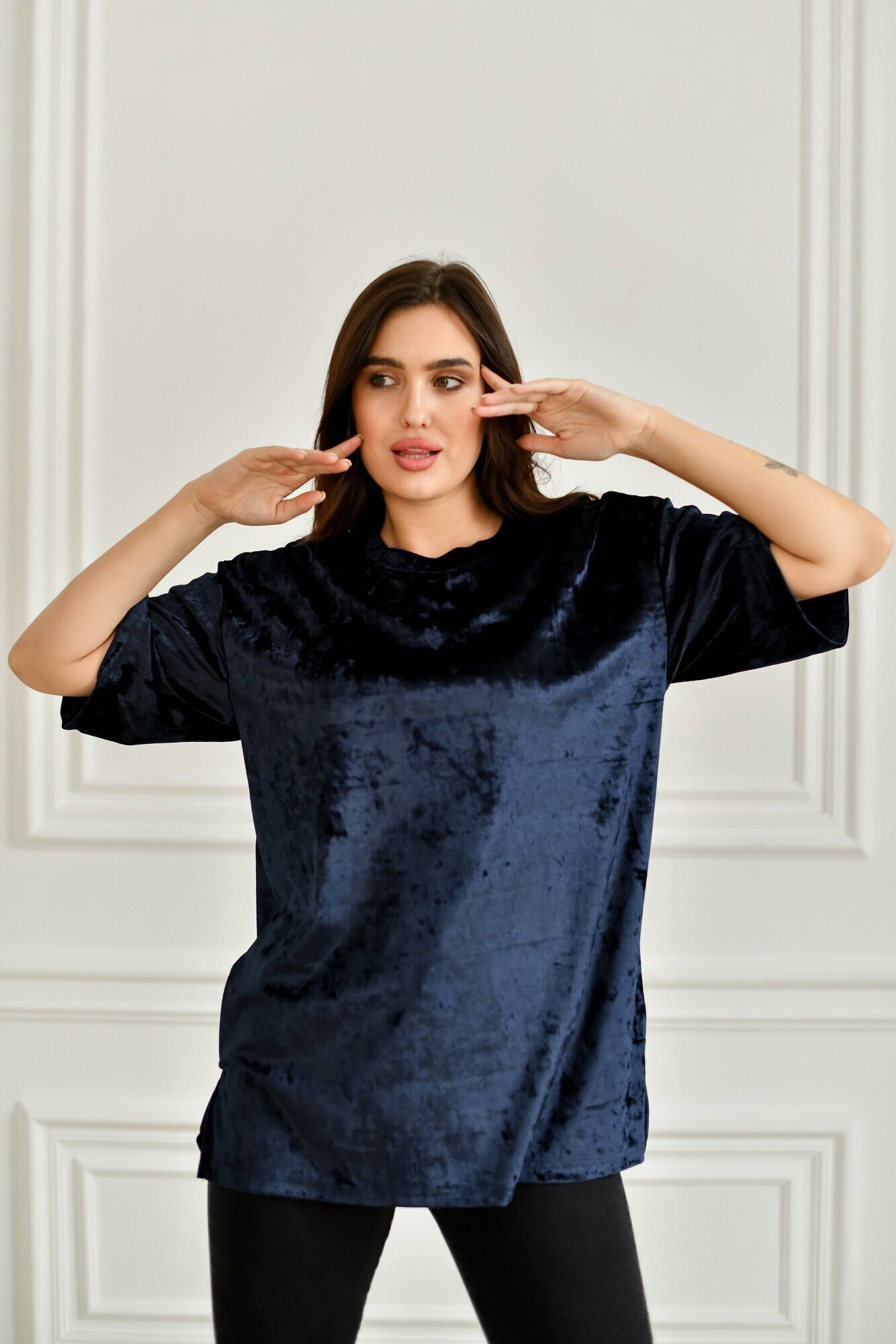 Футболка BUY-TEX.RU женская, велюровая, оверсайз, размер 46, cиний