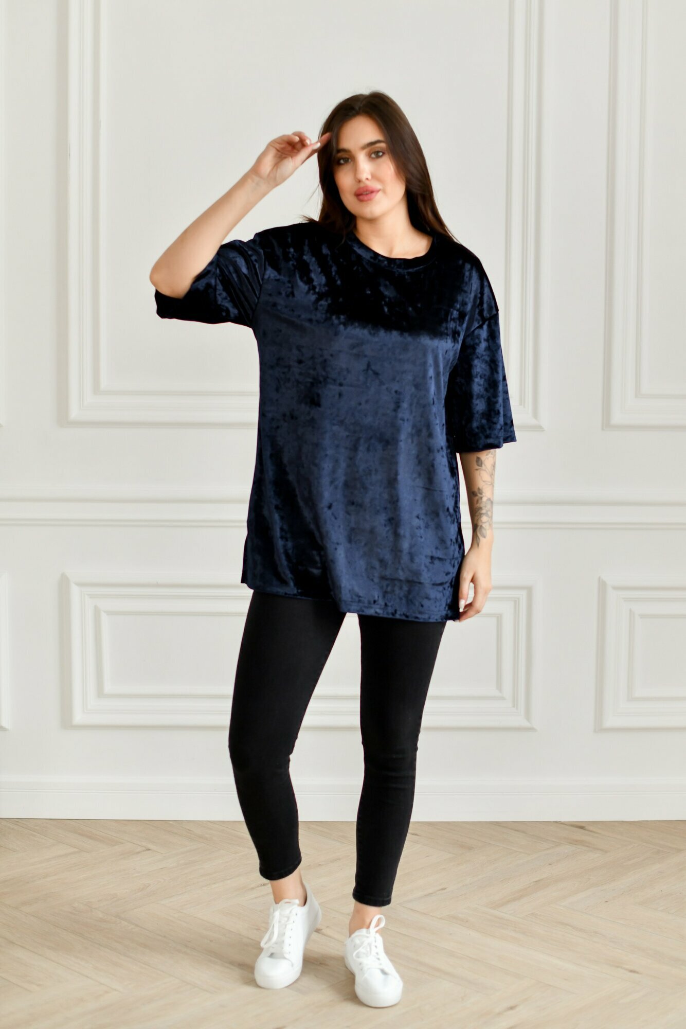 Футболка BUY-TEX.RU женская, велюровая, оверсайз, размер 44, cиний
