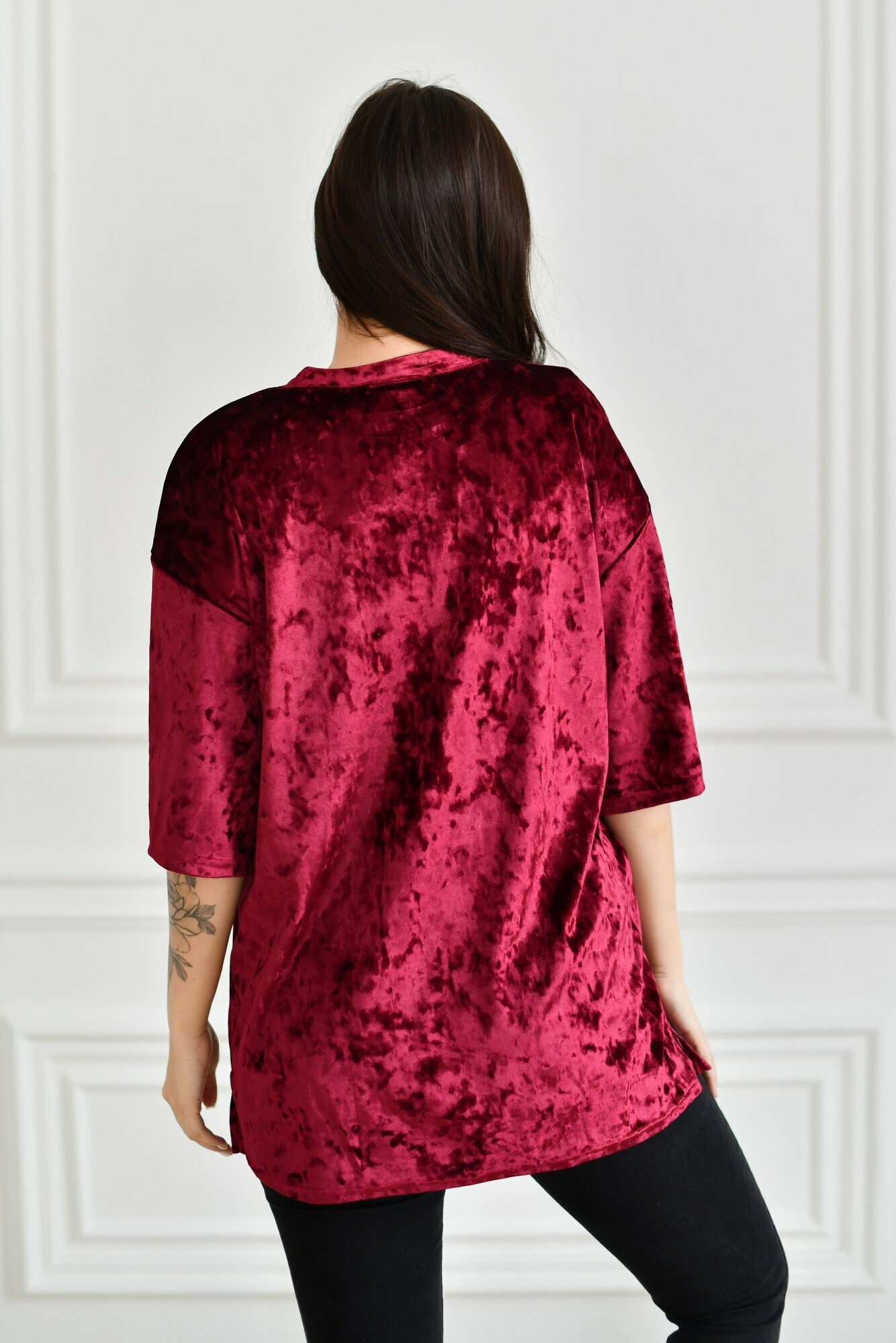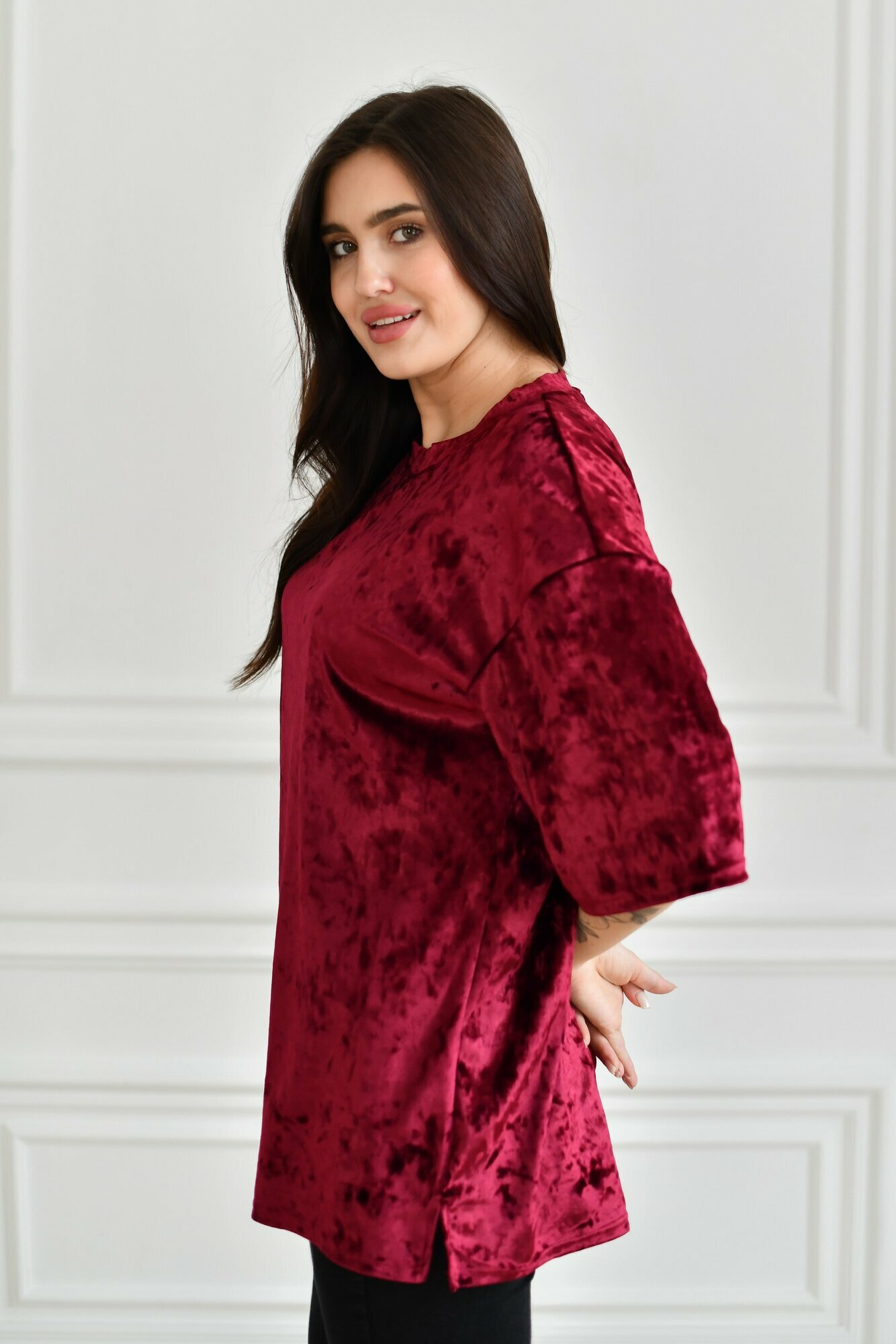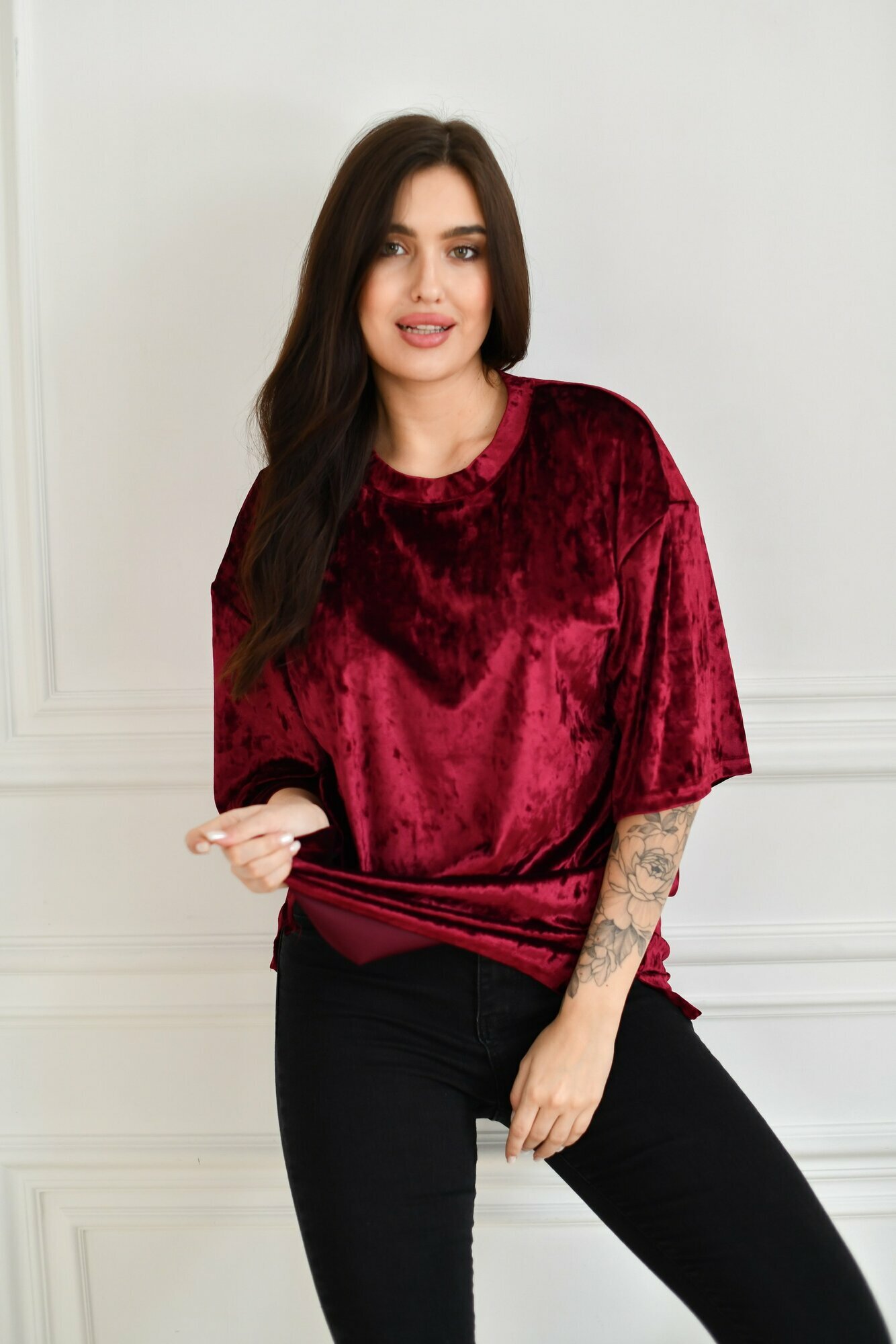 Футболка BUY-TEX.RU женская, велюровая, оверсайз, размер 46, бордо
