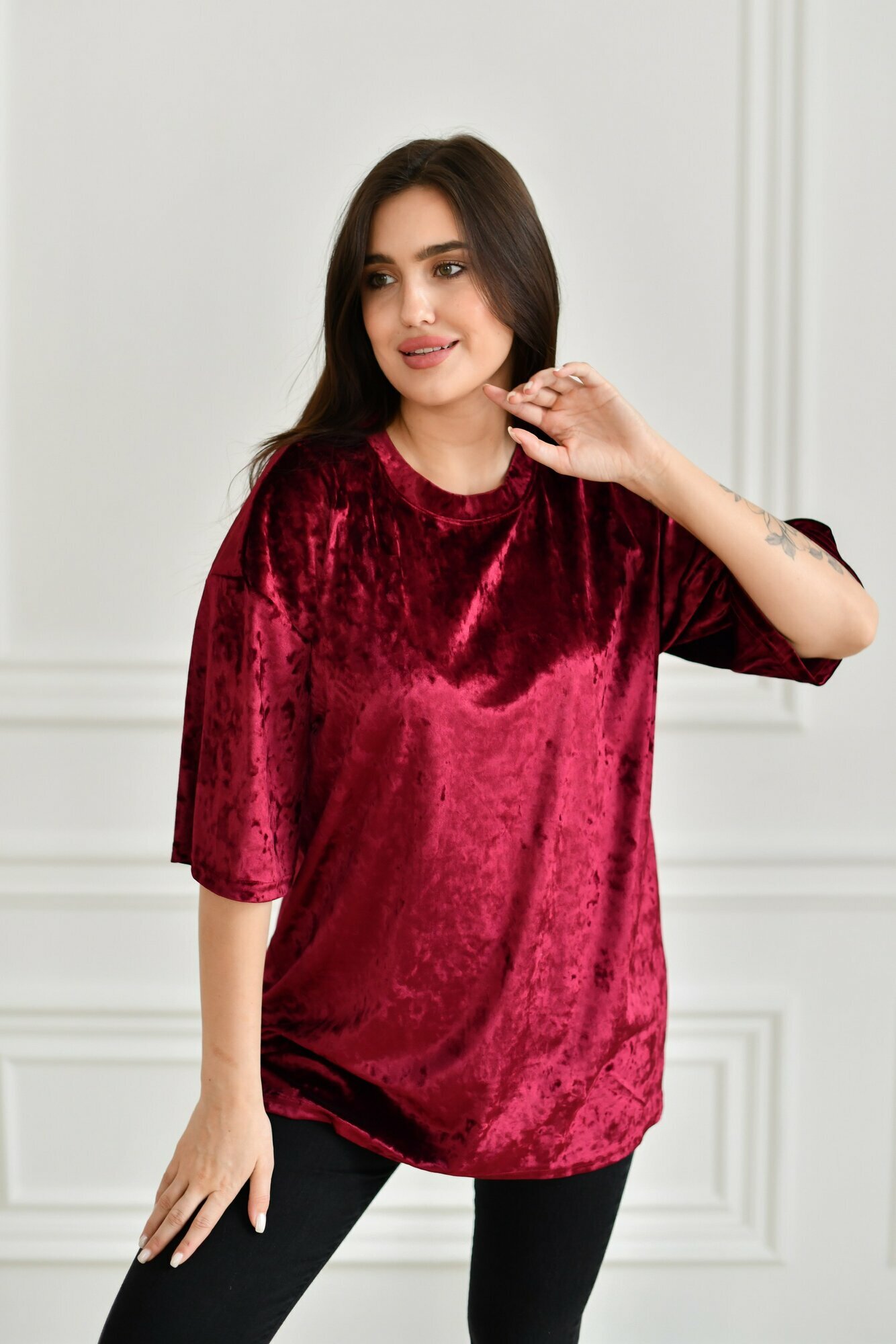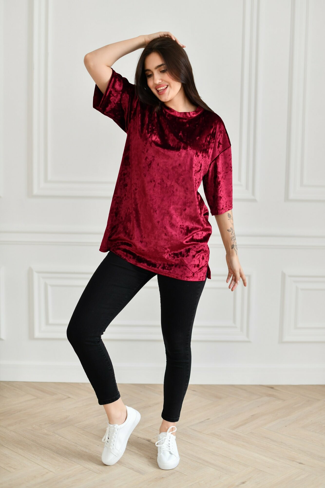 Футболка BUY-TEX.RU женская, велюровая, оверсайз, размер 44, бордо