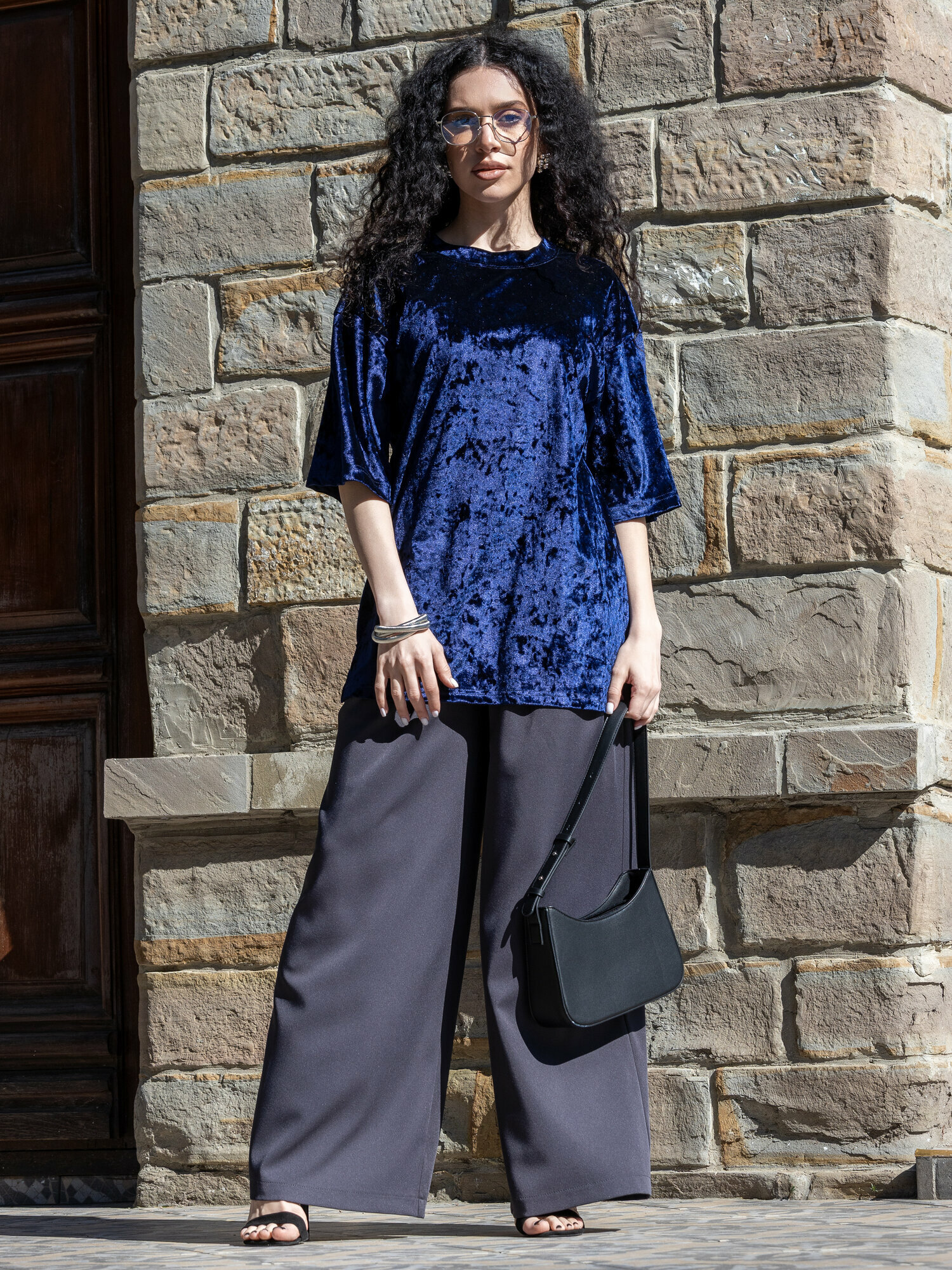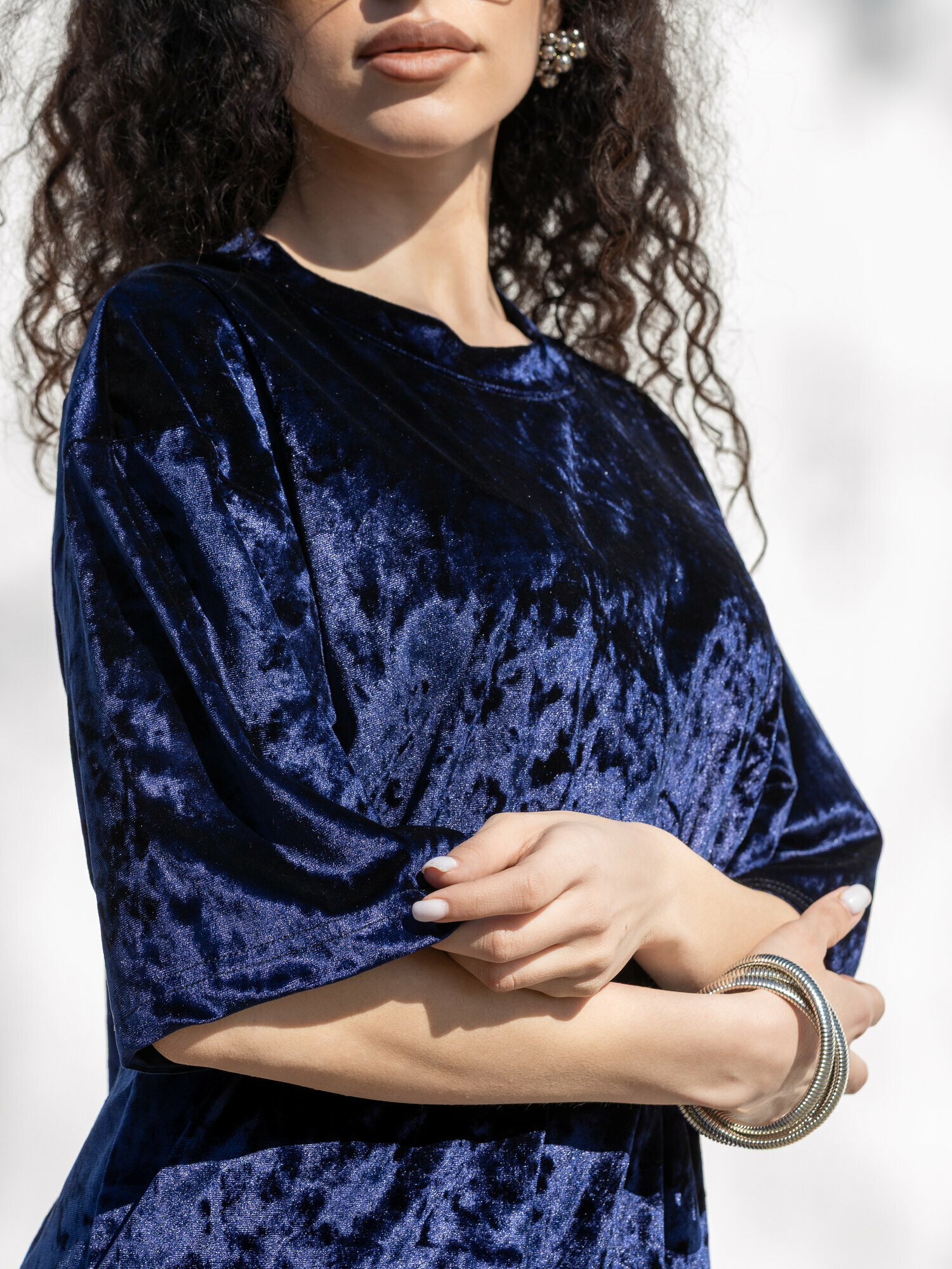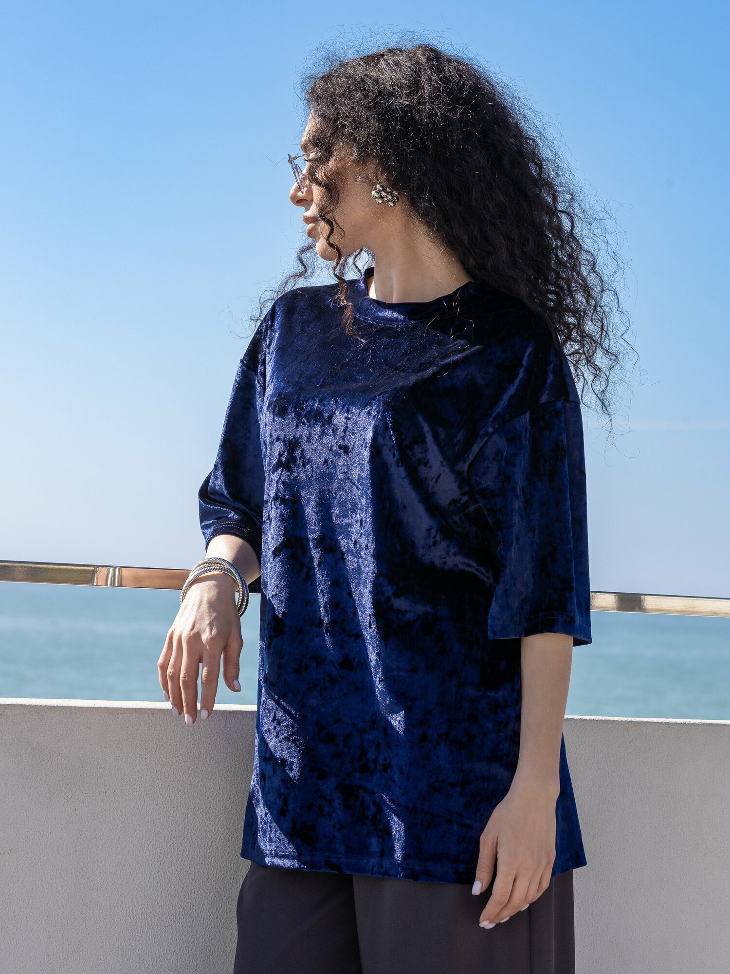 Футболка BUY-TEX.RU женская, велюровая, оверсайз, размер 48, cиний