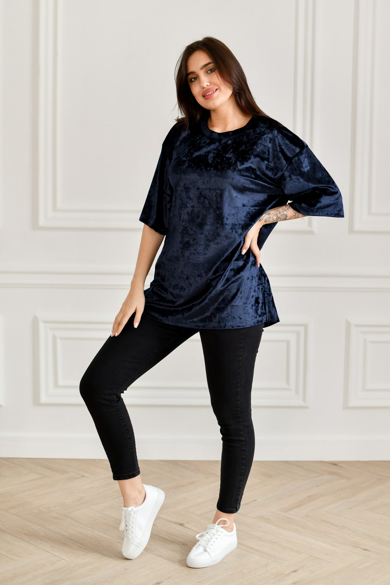 Футболка BUY-TEX.RU женская, велюровая, оверсайз, размер 44, cиний