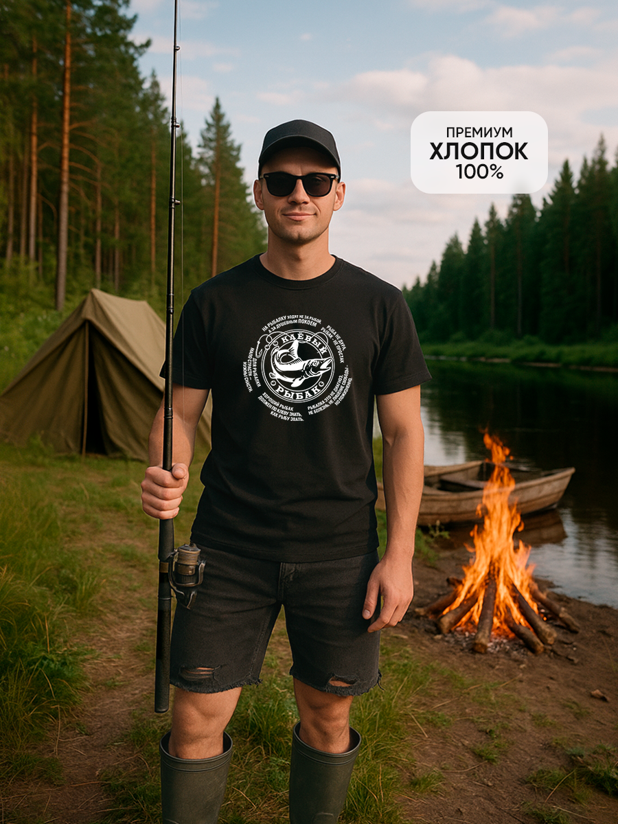 Футболка COOL GIFTS Клевый рыбак, размер XL, черно-белая графика