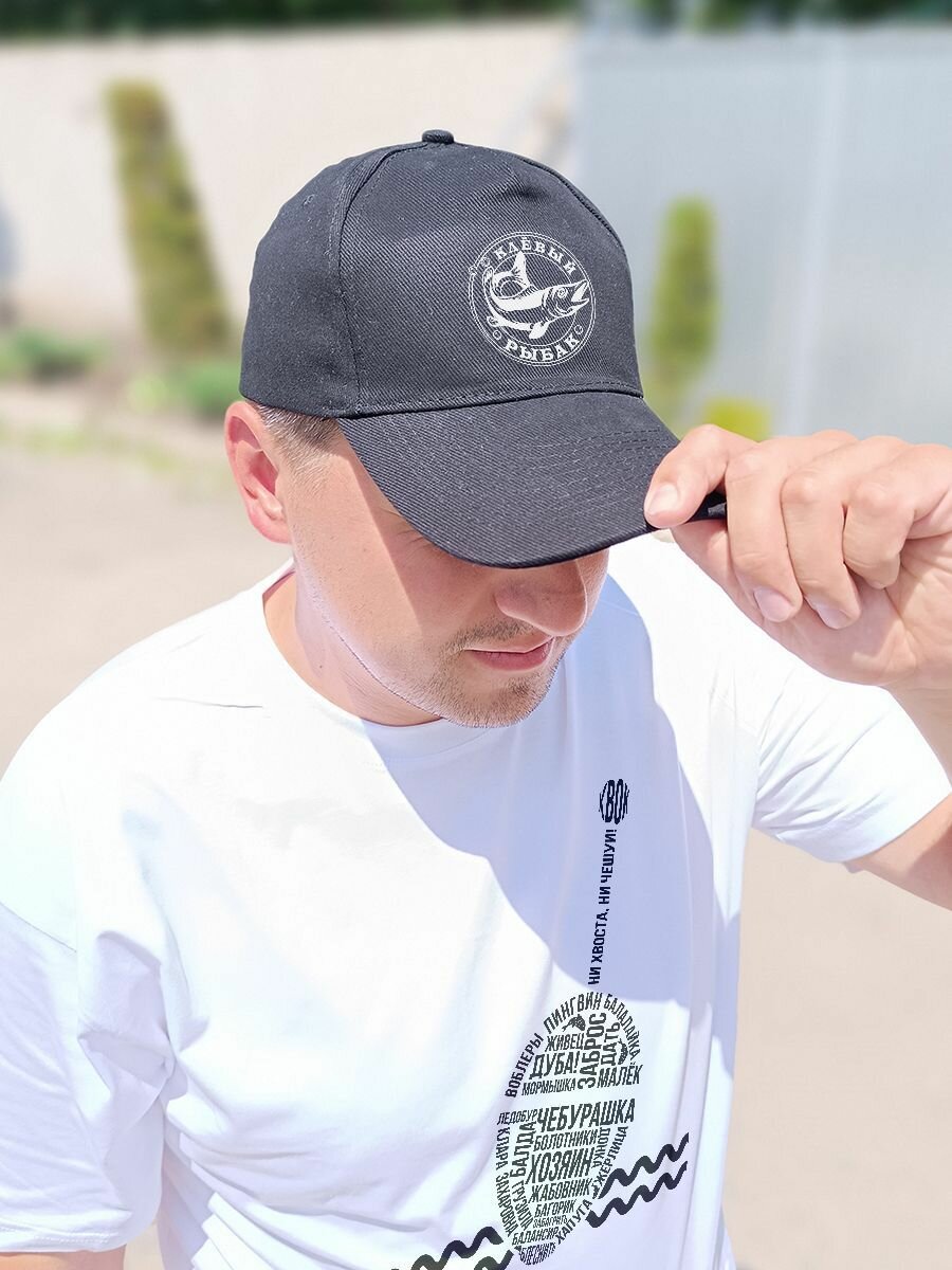 Футболка COOL GIFTS Клевый рыбак, размер M, черно-белая графика