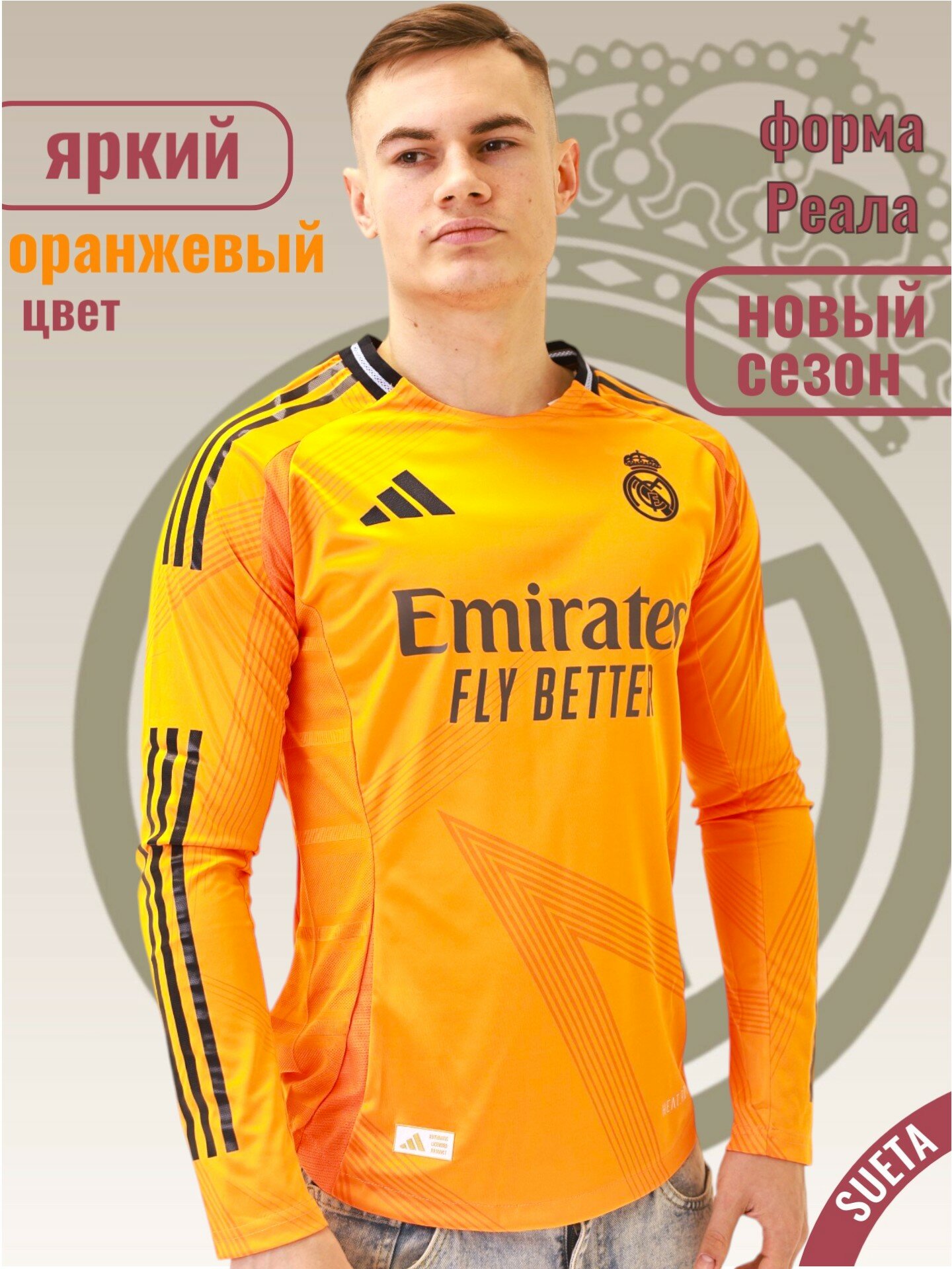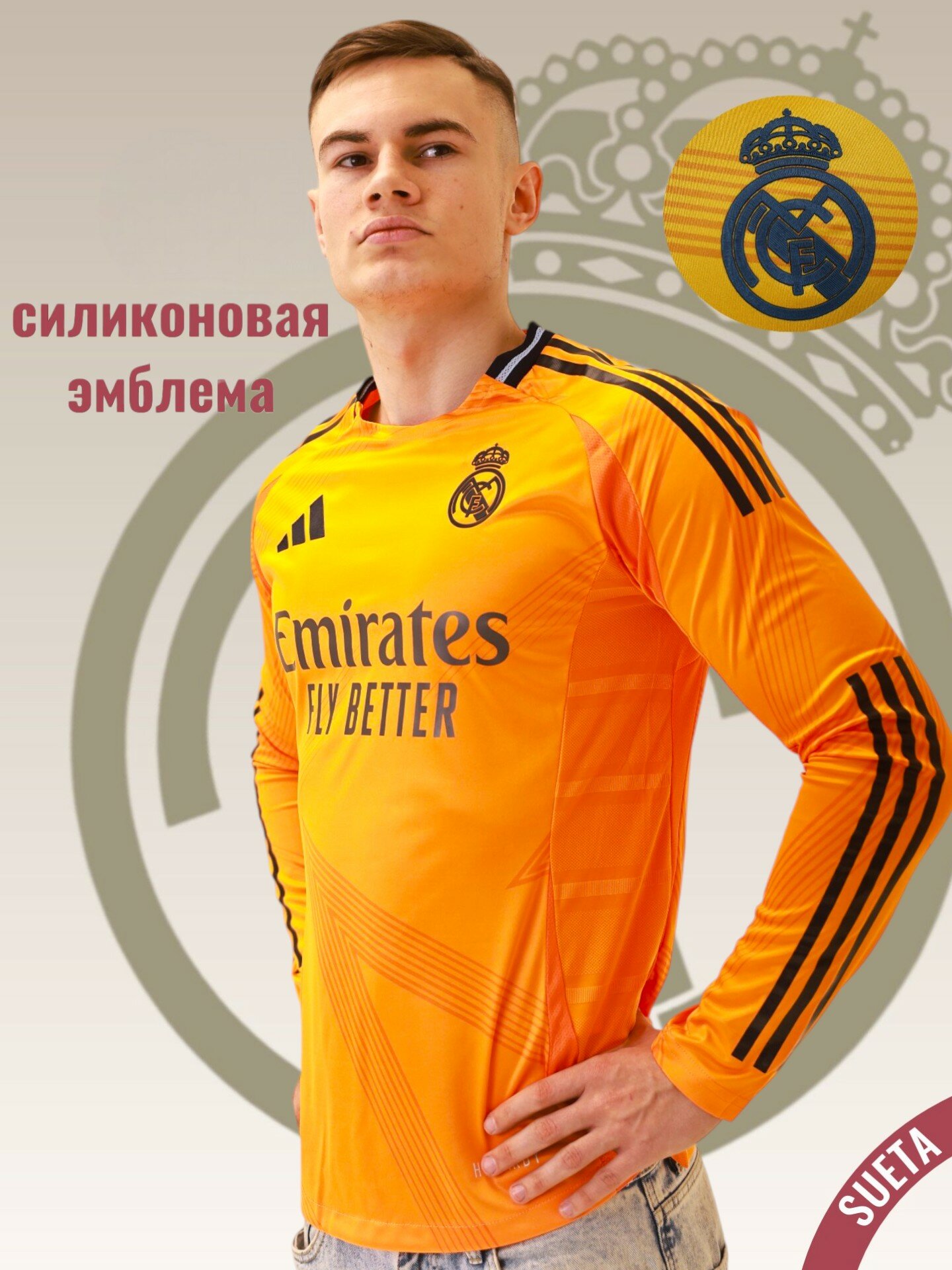 Футболка Реал Мадрид с длинным рукавом, 1 шт., размер M, оранжевый