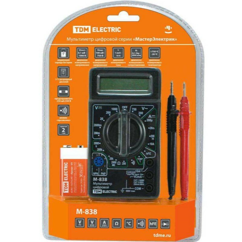Мультиметр цифровой TDM Electric, МастерЭлектрик М-838, из негорючего пластика, 1 шт