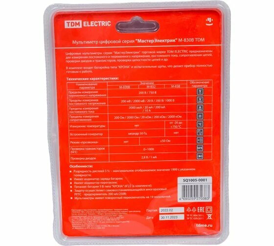 Мультиметр цифровой TDM, Мастер Электрик М-830В, SQ1005-0001