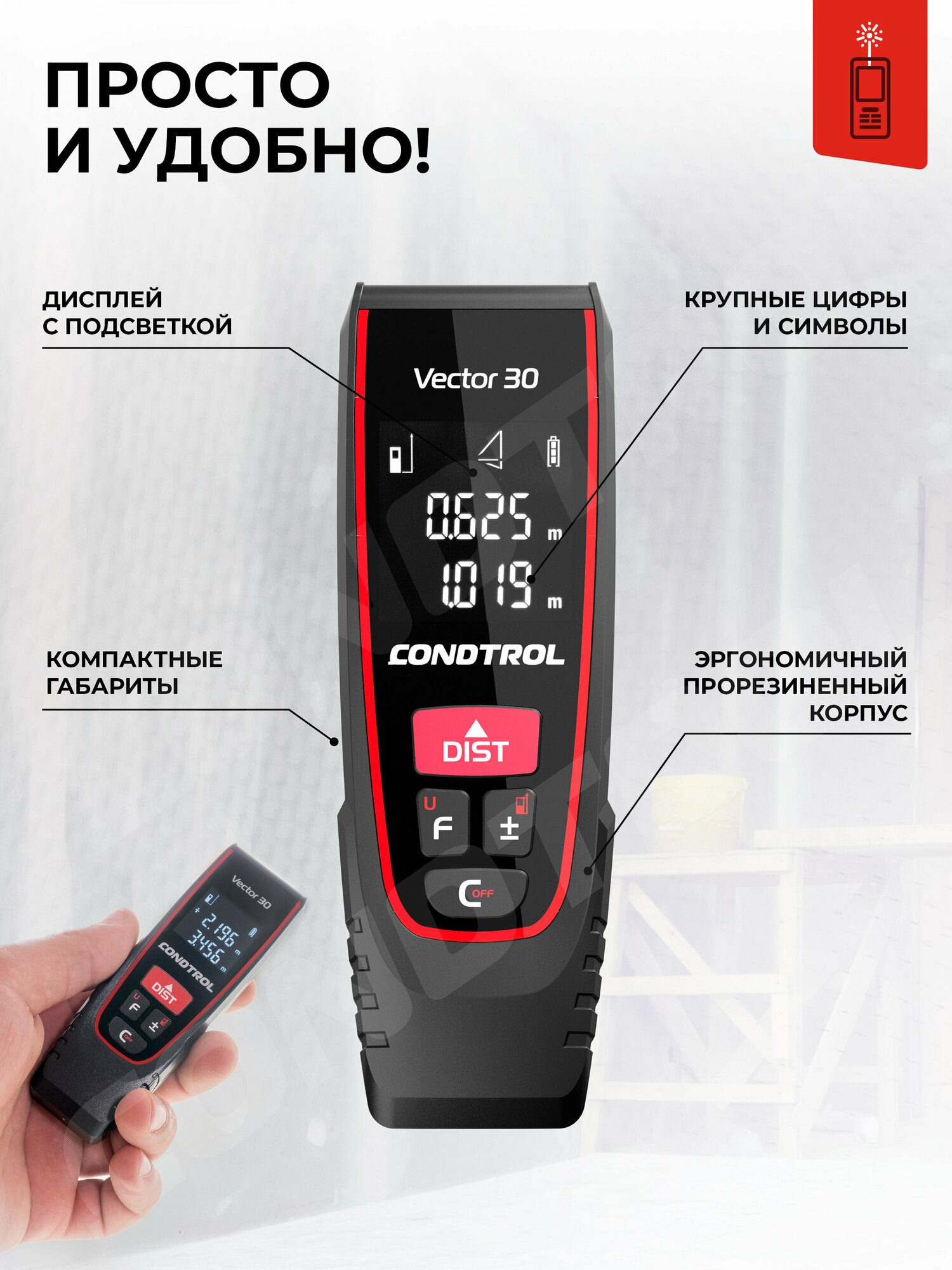 Кондтрол Вектор 30 лазерный дальномер / CONDTROL Vector 30 лазерный дальномер (30м)