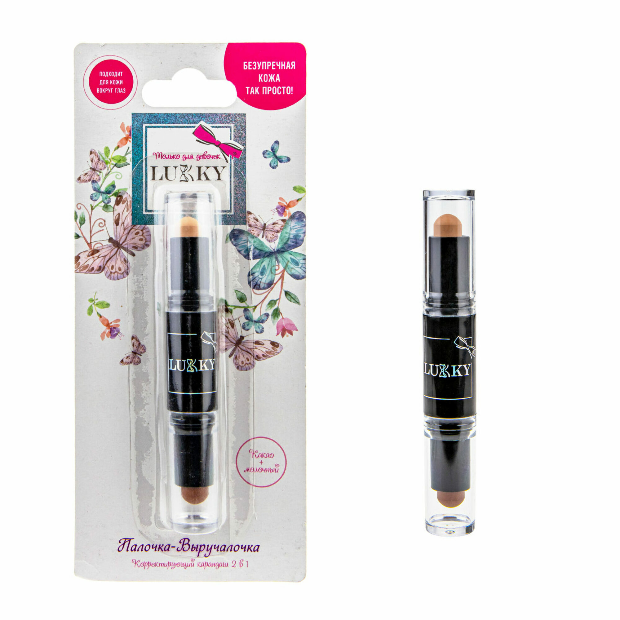 Купить Корректирующий карандаш Lukky Палочка Выручалочка 2 в 1, цвет какао+молочный, 4 гр