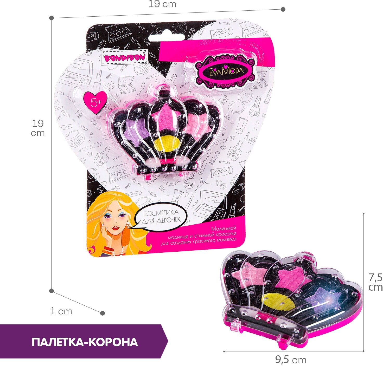 Купить Набор декоративной косметики для девочек Bondibon Eva Moda Корона с тенями для век 4 оттенка подарок девочке