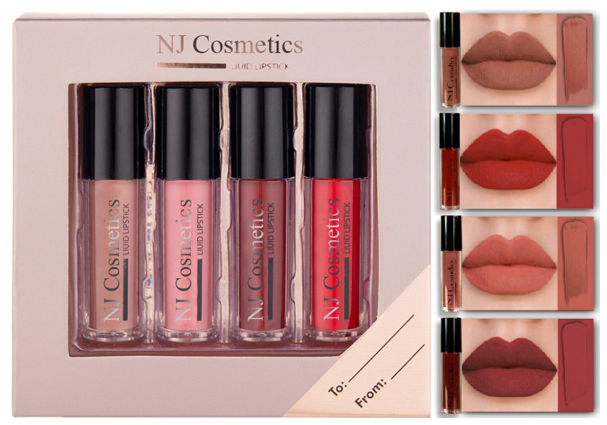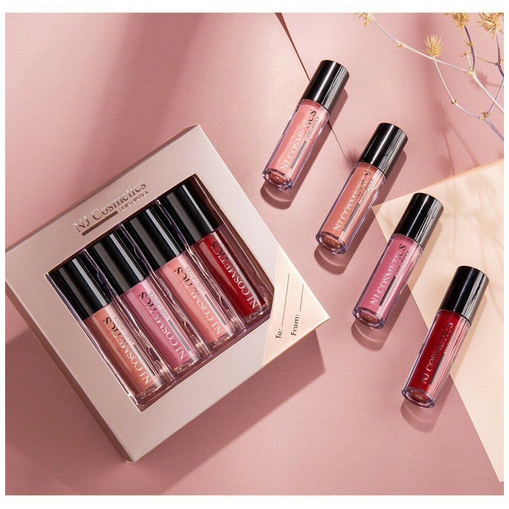 NJ Подарочный набор матовых блесков для губ, тон 02 - 4 шт интересное: