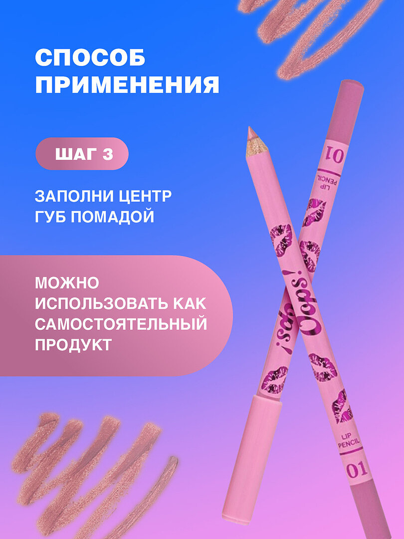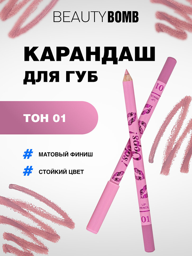Карандаш для губ Beauty Bomb Oops, тон 01 Bubble Gum пыльно-розовый интересное: