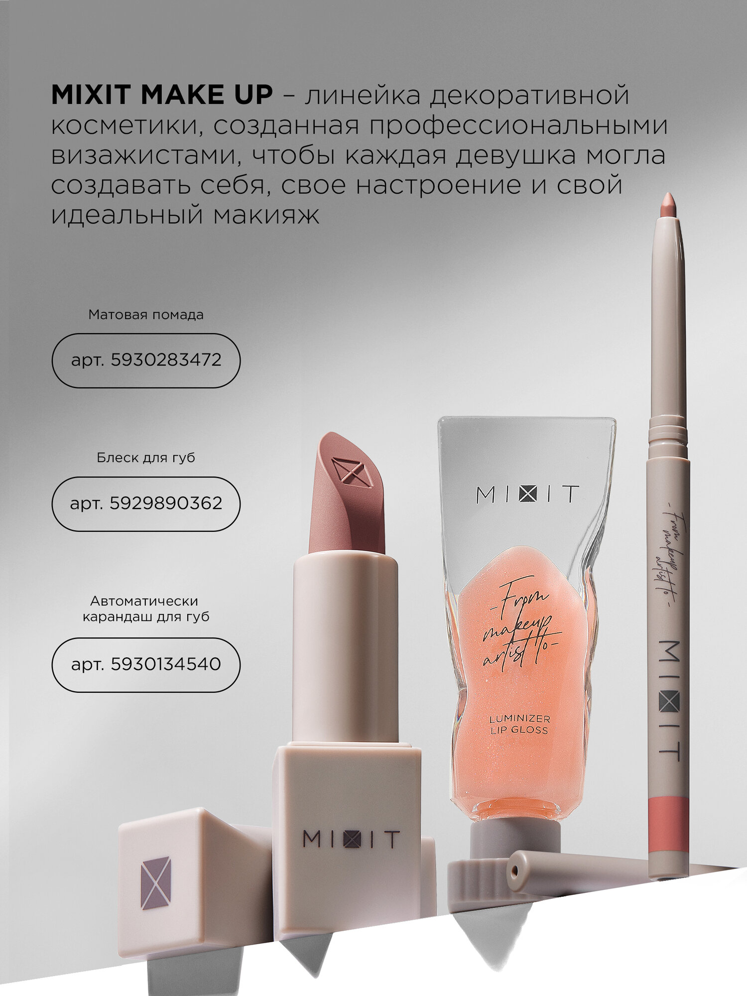 MIXIT Карандаш для губ стойкий тон 01. Косметика для макияжа MAKE UP