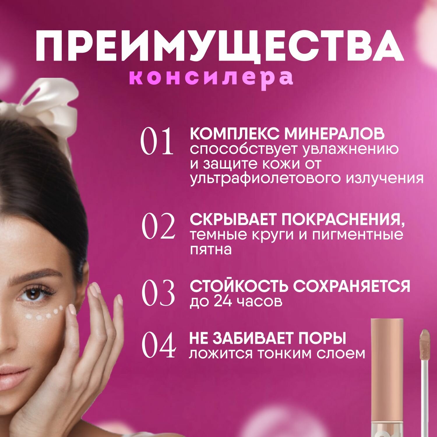 Ниже Вы можете прочитать отзывы на Консилер CONCEALER для лица и глаз, жидкий корректор для кожи век и лица, консилер под глаза, тональный корректор, ознакомится с подробными характеристиками, посмотреть интересные обзоры и фотографии на Консилер CONCEALER для лица и глаз, жидкий корректор для кожи век и лица, консилер под глаза, тональный корректор.