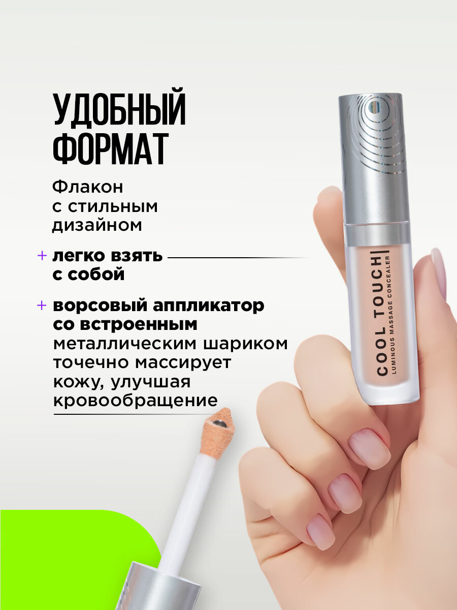 Консилер для лица Influence Beauty массажный светоотражающий Cool Touch, тон 02 medium light / светло-бежевый