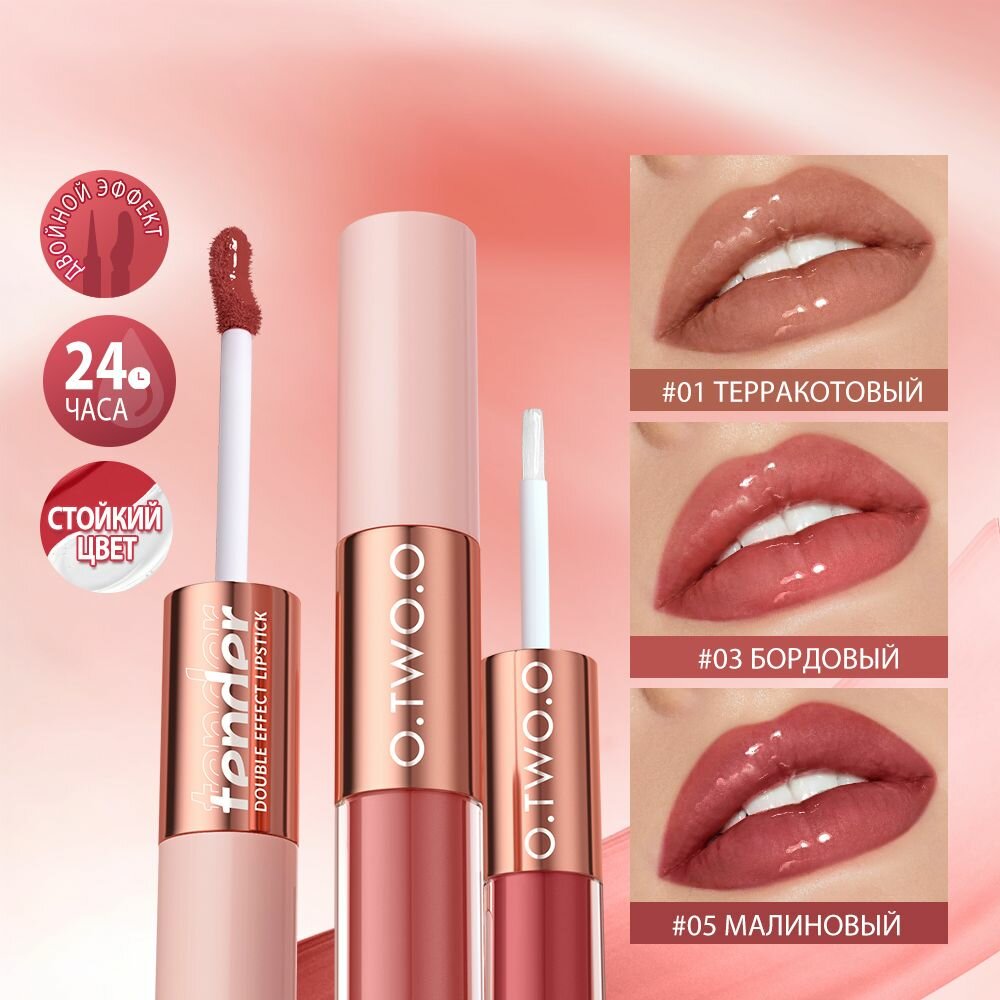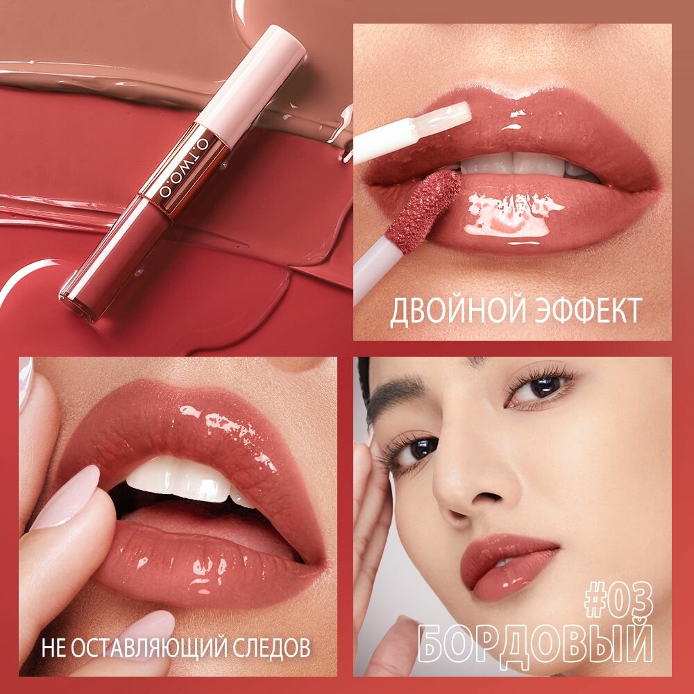 Блеск для губ и матовая помада 2в1 O.TWO.O нюдовая, тон 04 Ambiguity (коралловый) интересное: