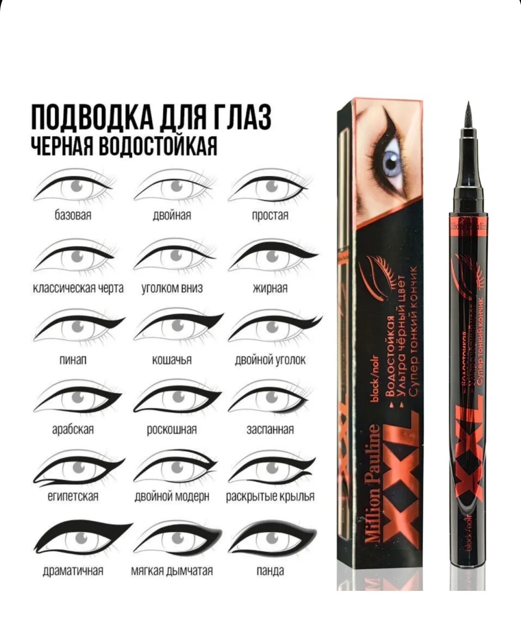 Набор для макияжа: Подводка для глаз XXL черная +Тушь 3XL Эффект накладных ресниц интересное: