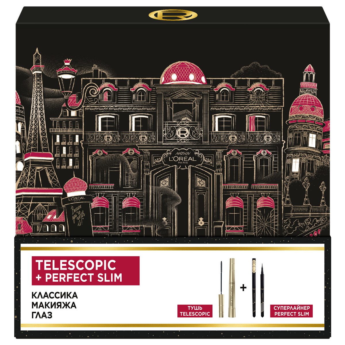 Купить Набор декоративной косметики L'Oreal Paris (Тушь для ресниц Telescopic черная + Лайнер для глаз Perfect Slim)