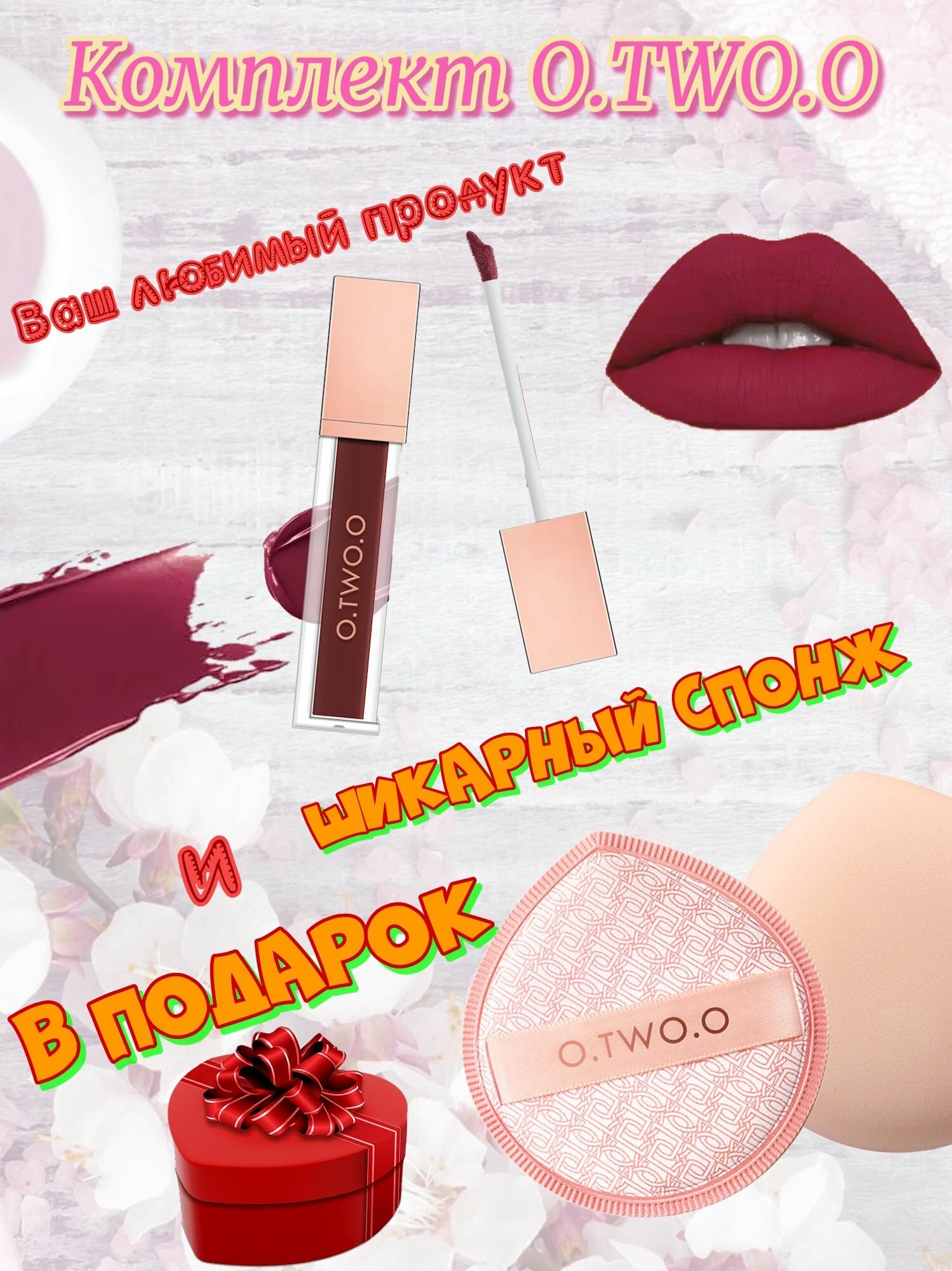 Ниже Вы можете прочитать отзывы на Набор O.TWO.O: Матовый тинт для губ, тон 06(Красно-Кофейный),5гр + спонж в подарок., ознакомится с подробными характеристиками, посмотреть интересные обзоры и фотографии на Набор O.TWO.O: Матовый тинт для губ, тон 06(Красно-Кофейный),5гр + спонж в подарок..