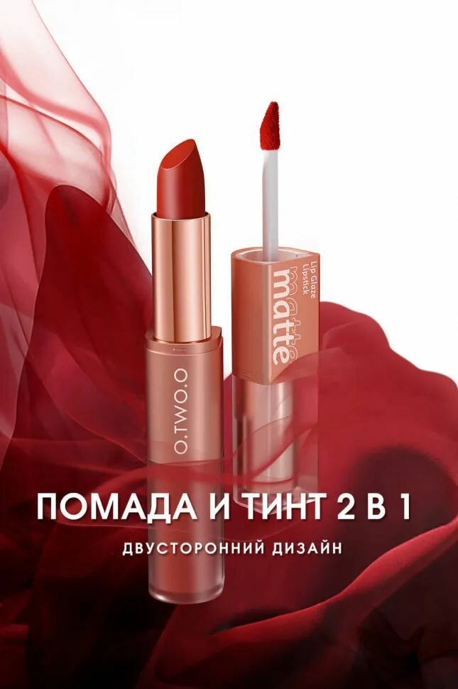 O.TWO.O, Матовая губная помада Matte и вельветовый тинт, 2в1, в оттенке L05(Кирпично-Красный), 2.5гр*4гр