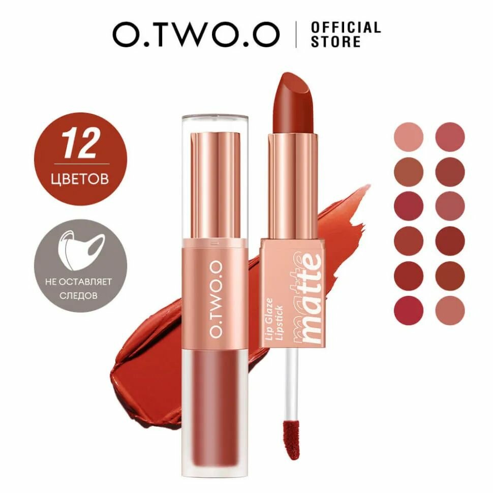 O.TWO.O, Матовая губная помада Matte и вельветовый тинт, 2в1, в оттенке L02(Каштановый), 2.5гр*4гр