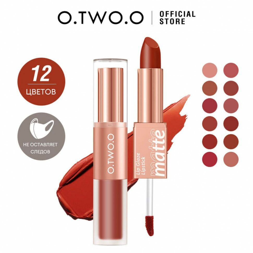 O.TWO.O, Матовая губная помада Matte и вельветовый тинт, 2в1, в оттенке L05(Кирпично-Красный), 2.5гр*4гр
