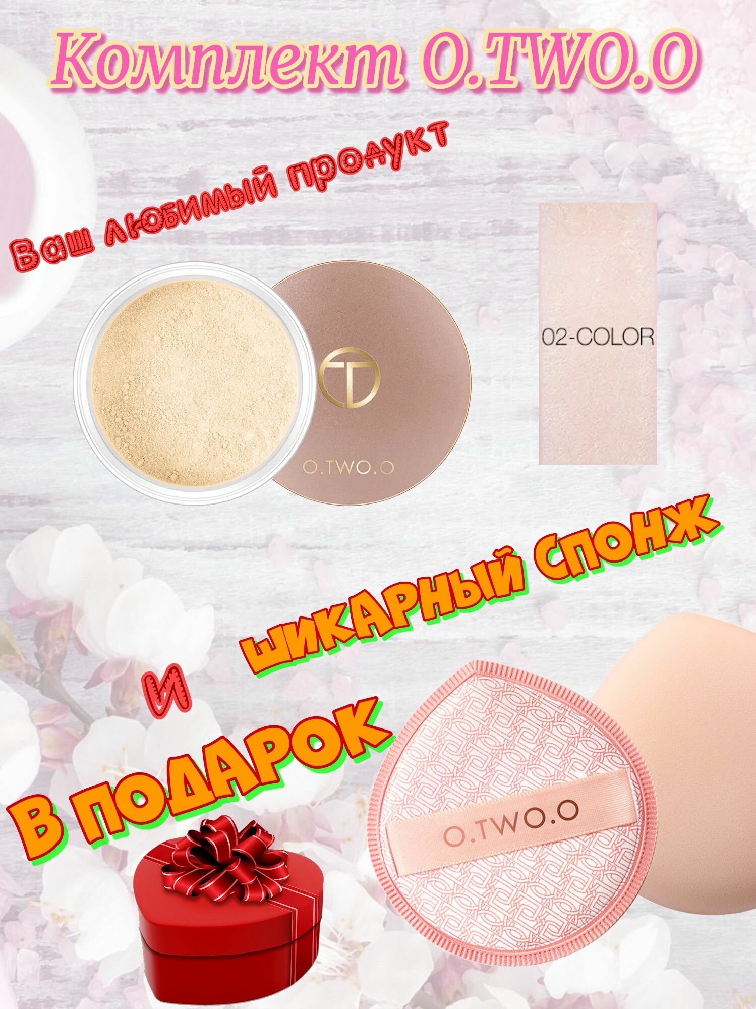 Набор O.TWO.O: Рассыпчатая пудра Loose Powder, тон 02 (Бежевый),15гр + спонж в подарок. интересное: