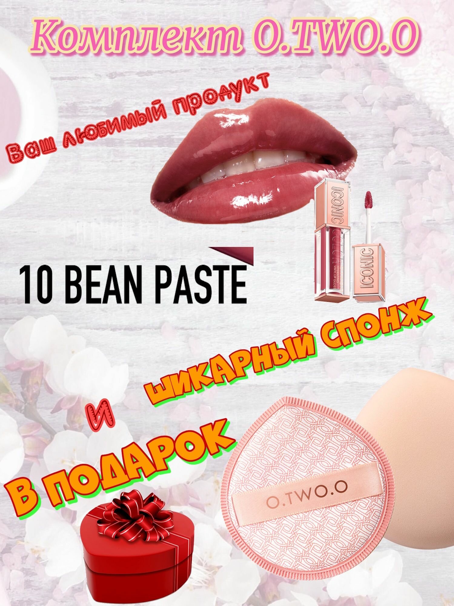 Купить Набор O.TWO.O: Увлажняющии блеск для губ "Виниловый Эффект", тон 10(Бобовая Паста), 3.3гр + спонж в подарок.