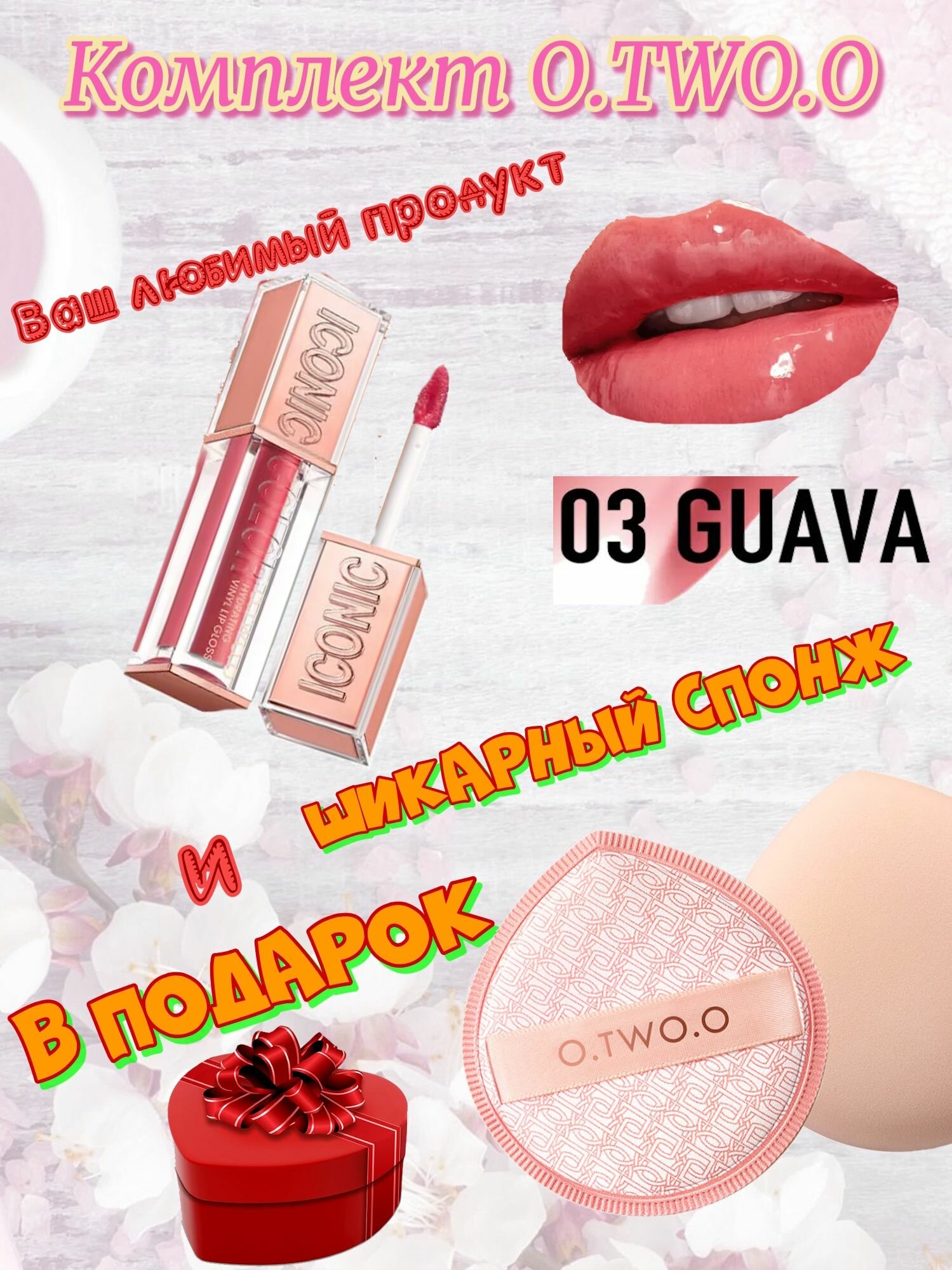 Купить Набор O.TWO.O: Увлажняющии блеск для губ "Виниловый Эффект", тон 03(Гуава), 3.3гр + спонж в подарок.