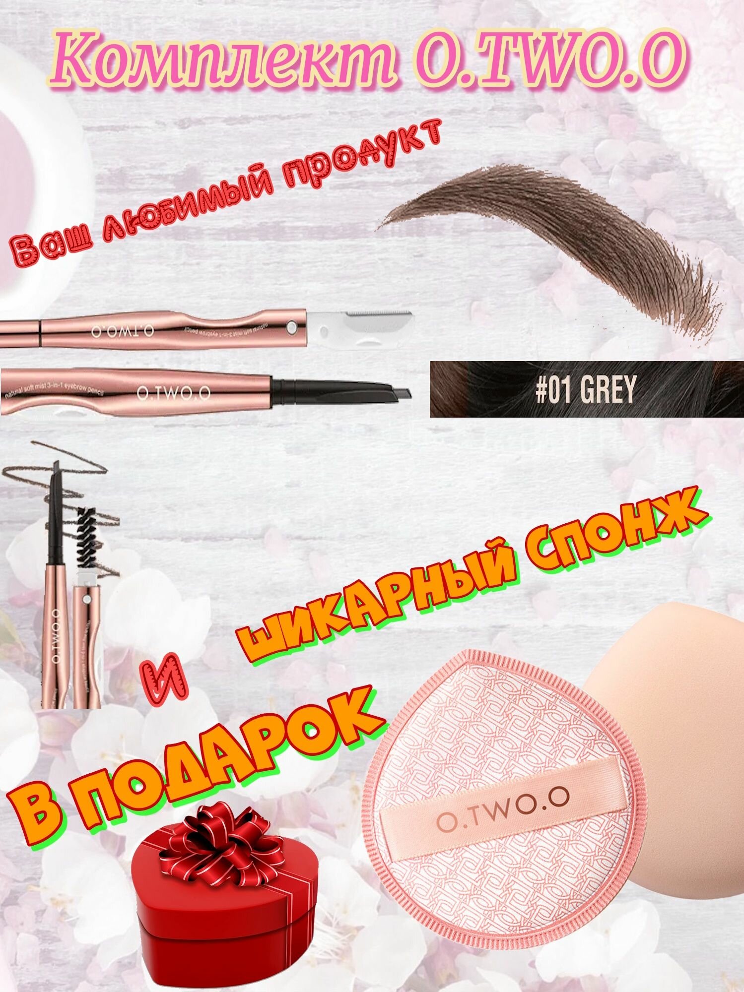 Купить Набор O.TWO.O: Карандаш для бровей, тон 01(Серый), 0,12гр + спонж в подарок.