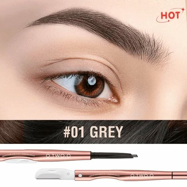 O.TWO.O, Карандаш для бровей 3 в 1, в оттенке 01, Gray (Серый), 0,12гр