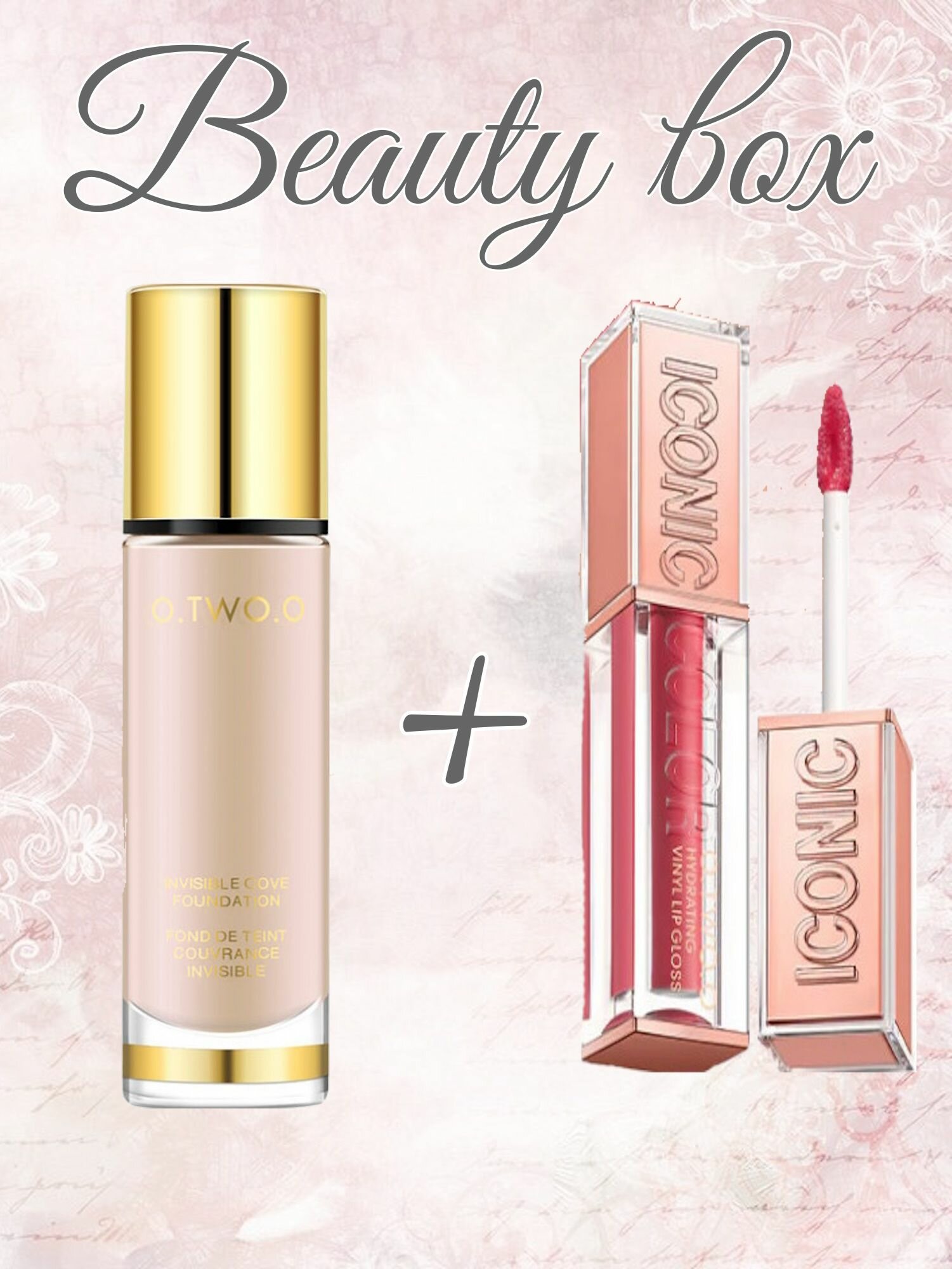 Набор O.TWO.O, Тональный крем Gold Invisible, тон 03, 30мл+Увлажняющий блеск для губ "Виниловыи Эффект", тон 07 (Малина), 3,3гр