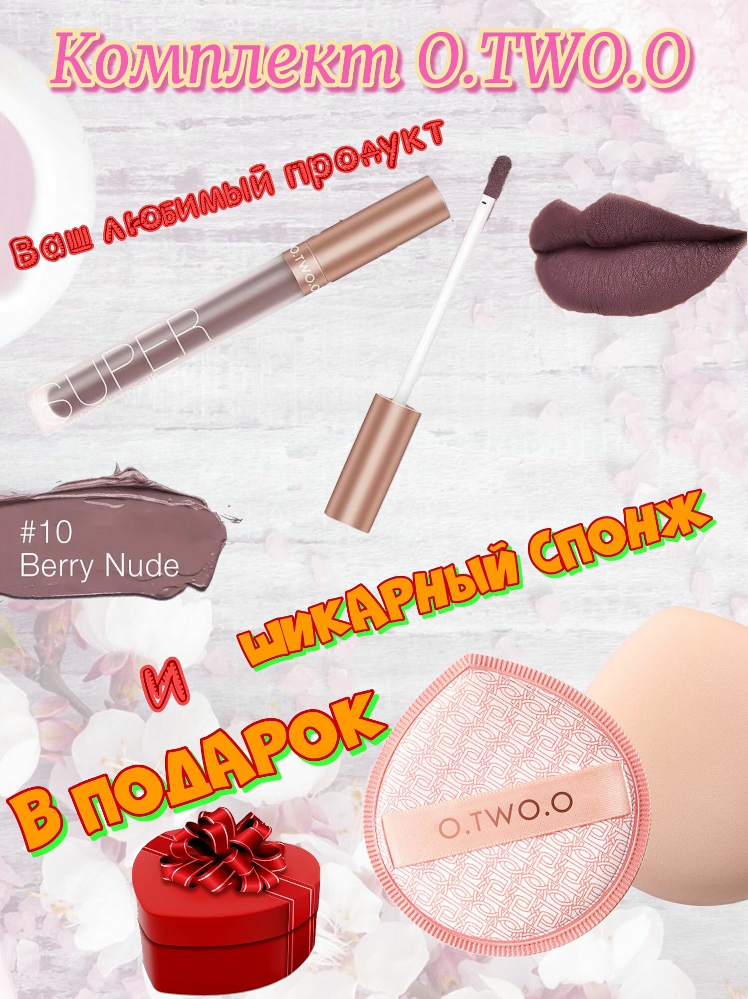 СохранитьНабор O.TWO.O: Матовый блеск для губ Honey Whisper, тон 10(Berry Nude),3мл. + Спонж в подарок. интересное: