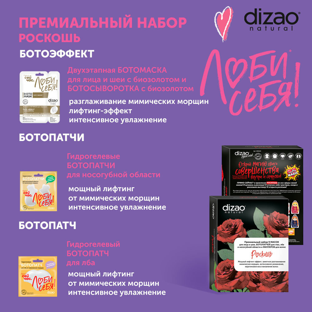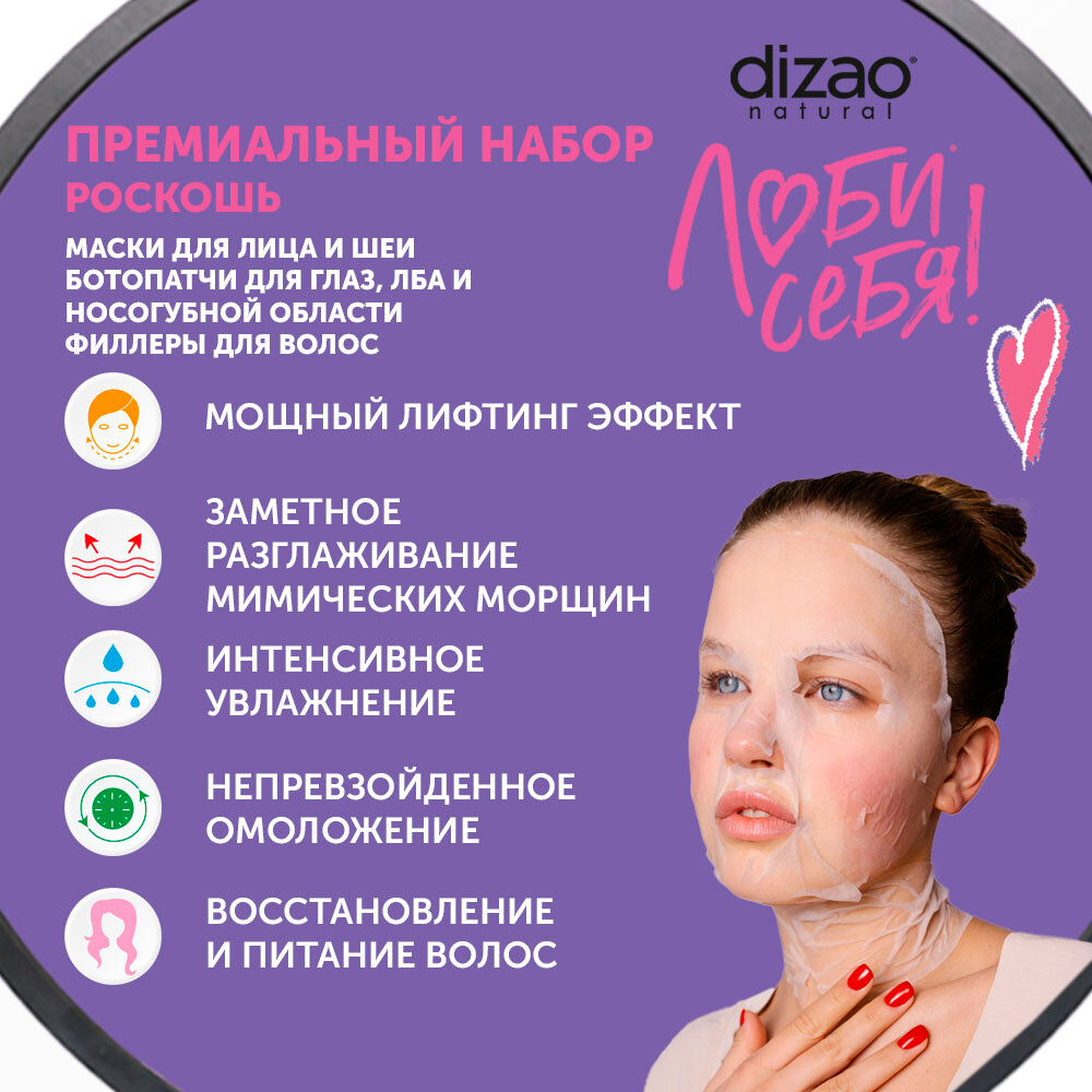 Подарочный набор для женщин, маска для лица, патчи для глаз и филлеры для волос Dizao "Роскошь" 9 шт интересное: