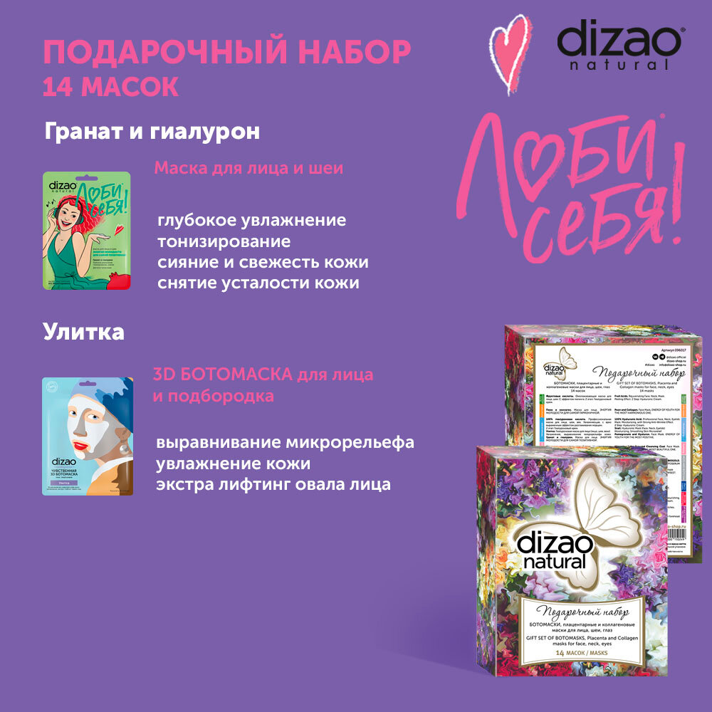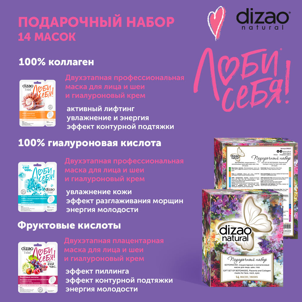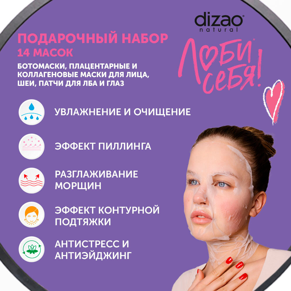 Подарочный набор для женщин, 8 тканевых масок для лица Dizao "Классика", для всех типов кожи