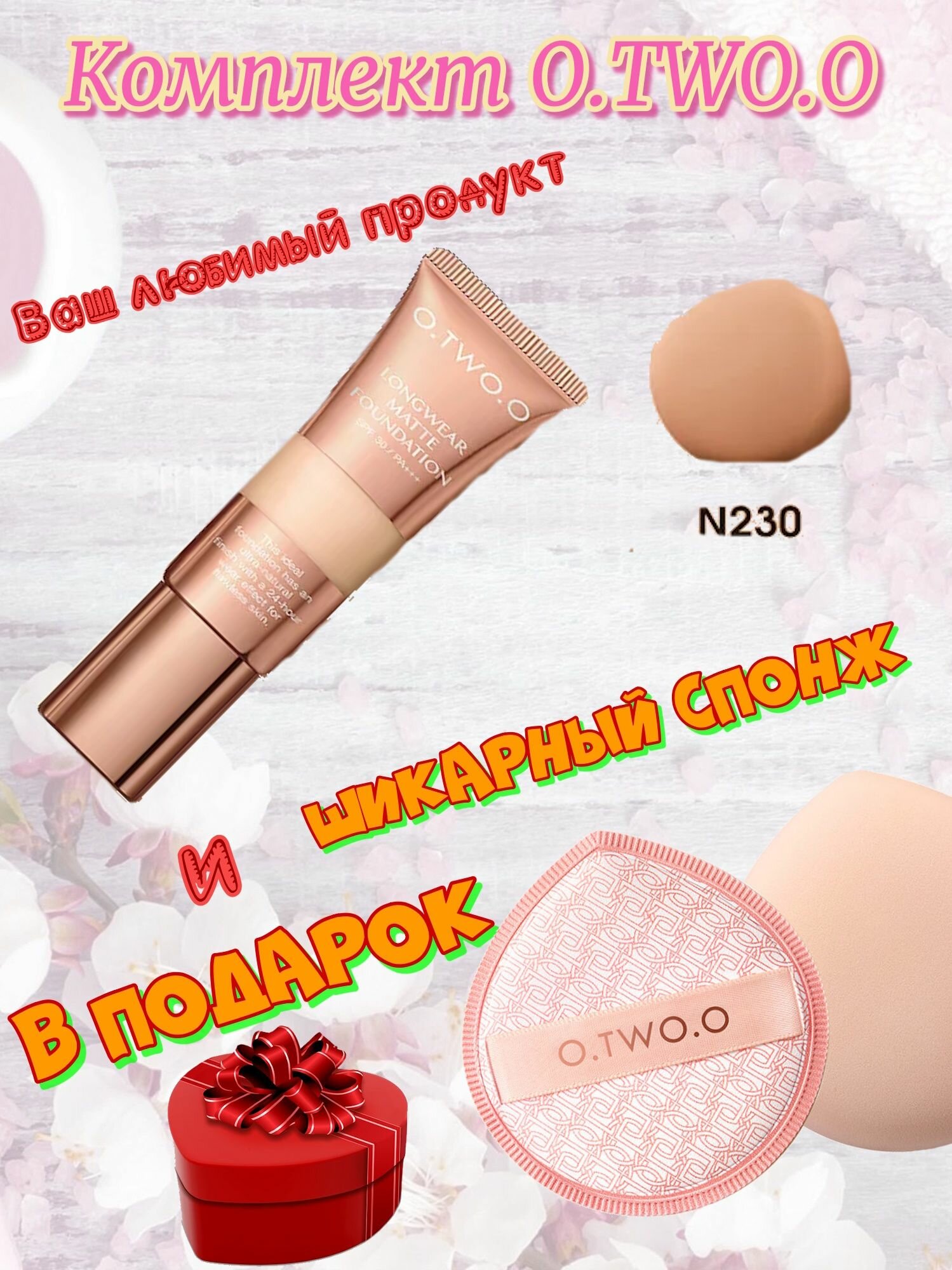 Купить Набор O.TWO.O: Консилер Matte Finish Liquid Foundation, тон 230(Темный Бежевый) 30мл + спонж в подарок.