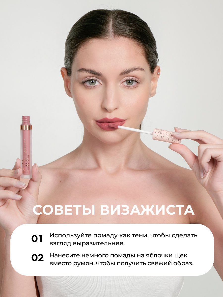 Помада для губ матовая Latte Beauty "Ultimatte", розовое-облако, жидкая, с эффектом увлажнения, 35г, Италия, оттенок 02