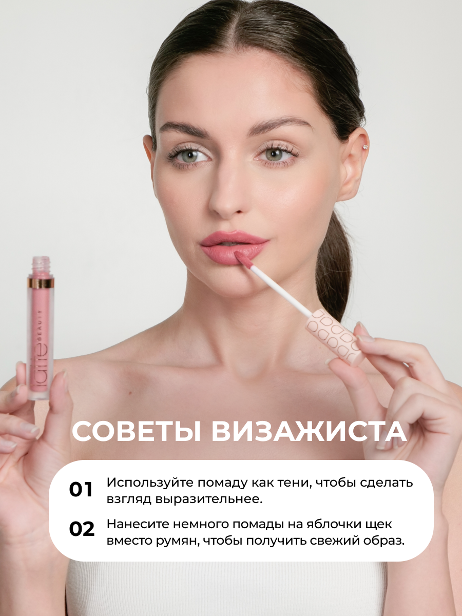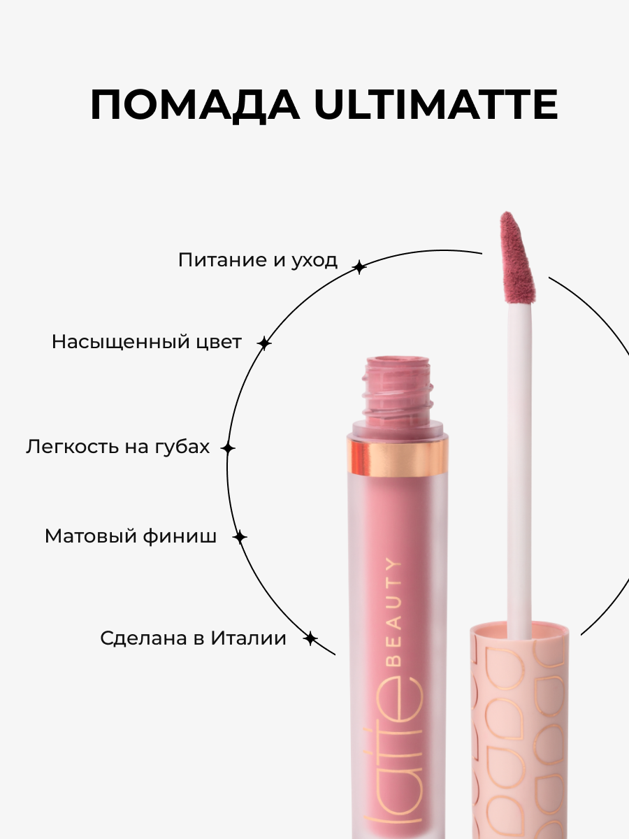 Купить Помада для губ матовая Latte Beauty "Ultimatte", розовое-облако, жидкая, с эффектом увлажнения, 35г, Италия, оттенок 02